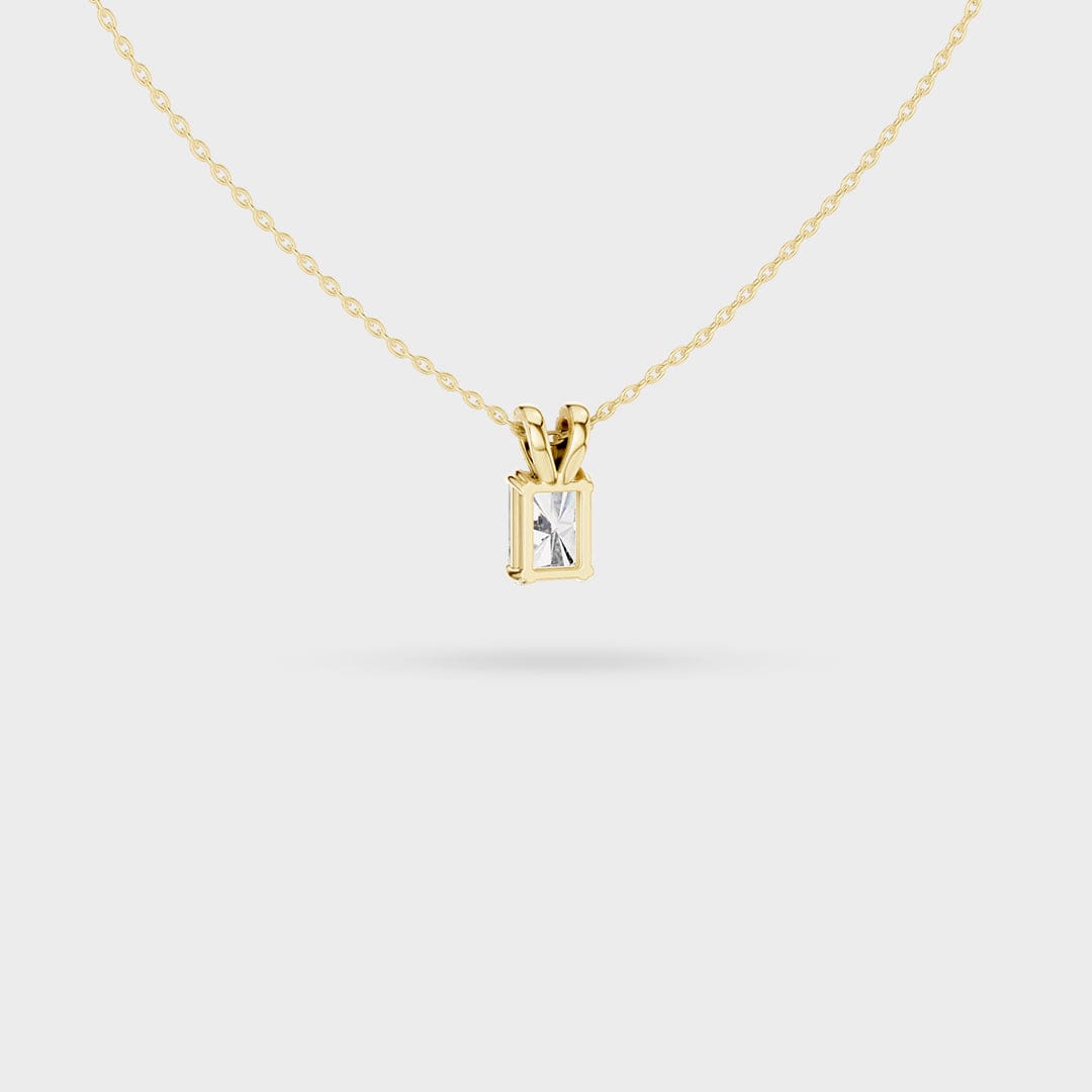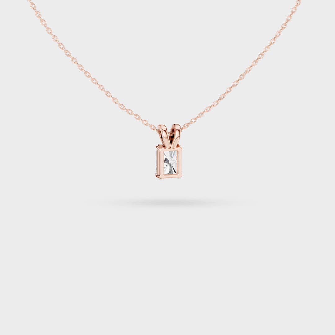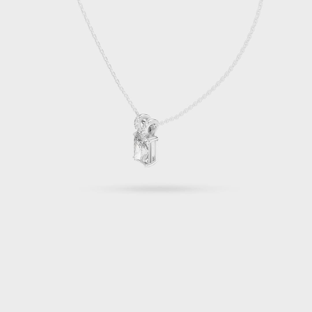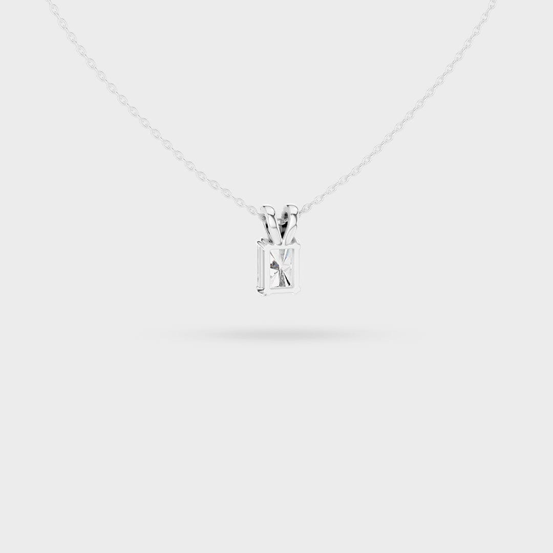 Description: This elegant necklace centers on a brilliant rectangular, step-cut gemstone that offers exceptional clarity and a beautiful flash of light. The stone is held by a secure prong setting, emphasizing its clean, architectural lines.