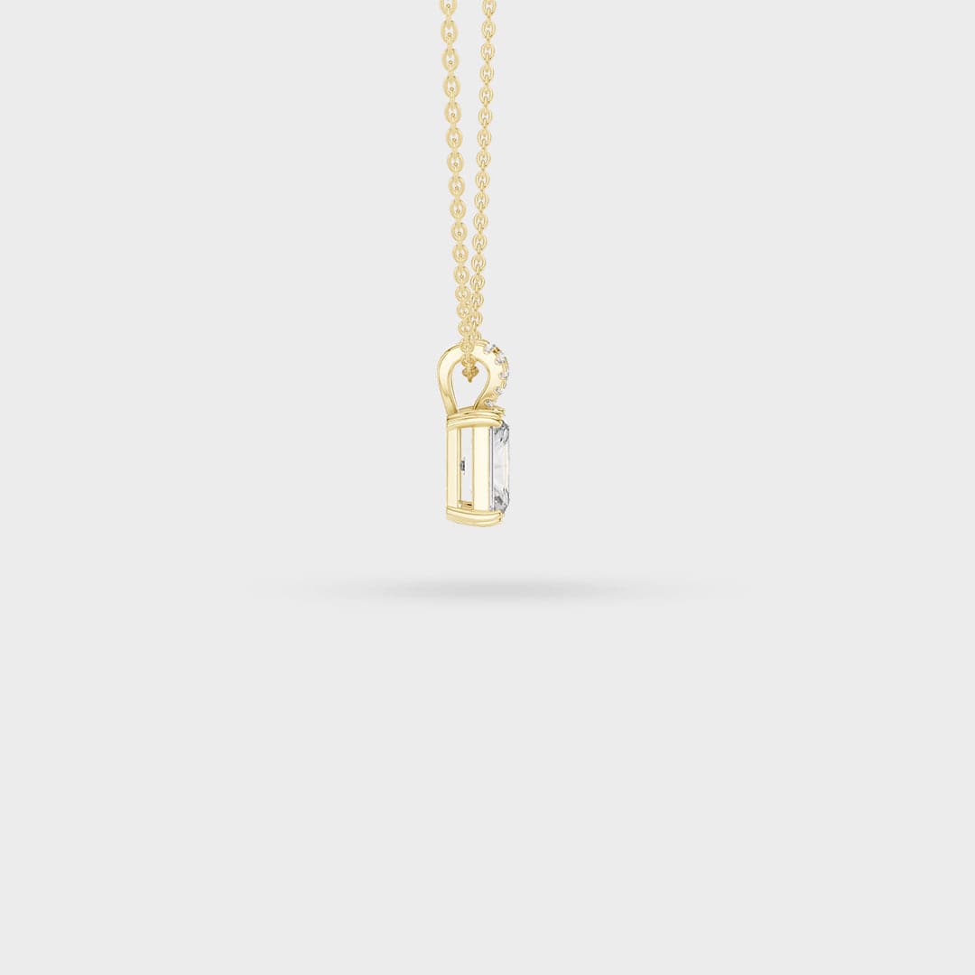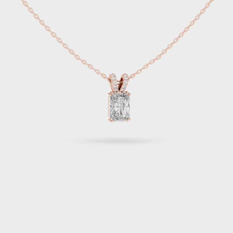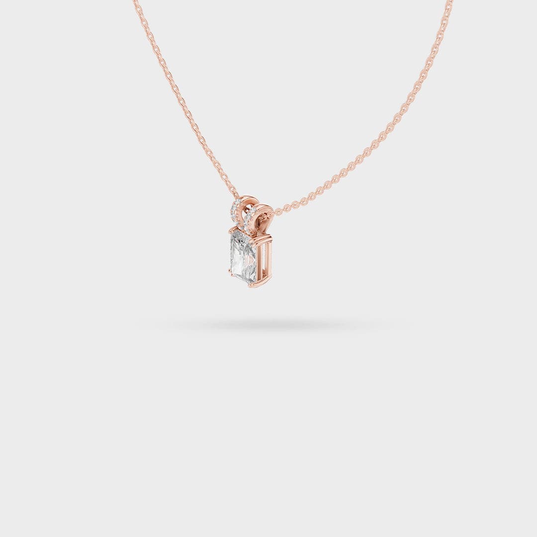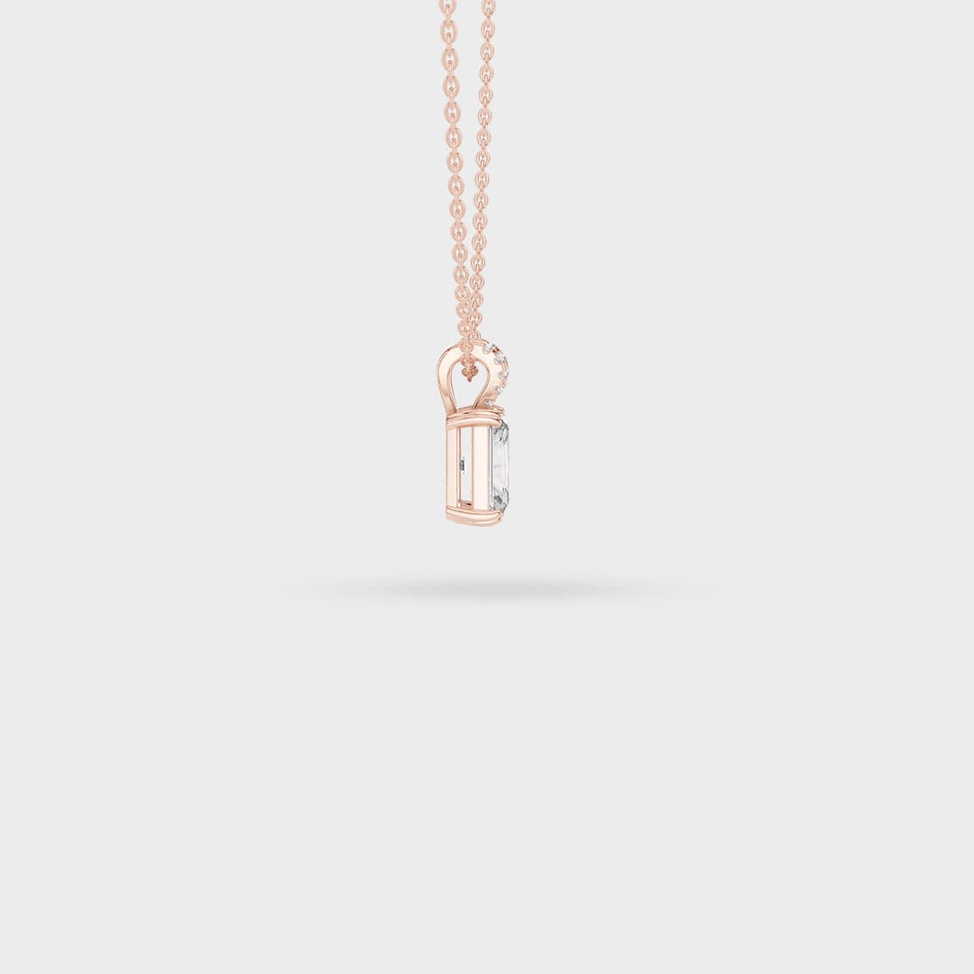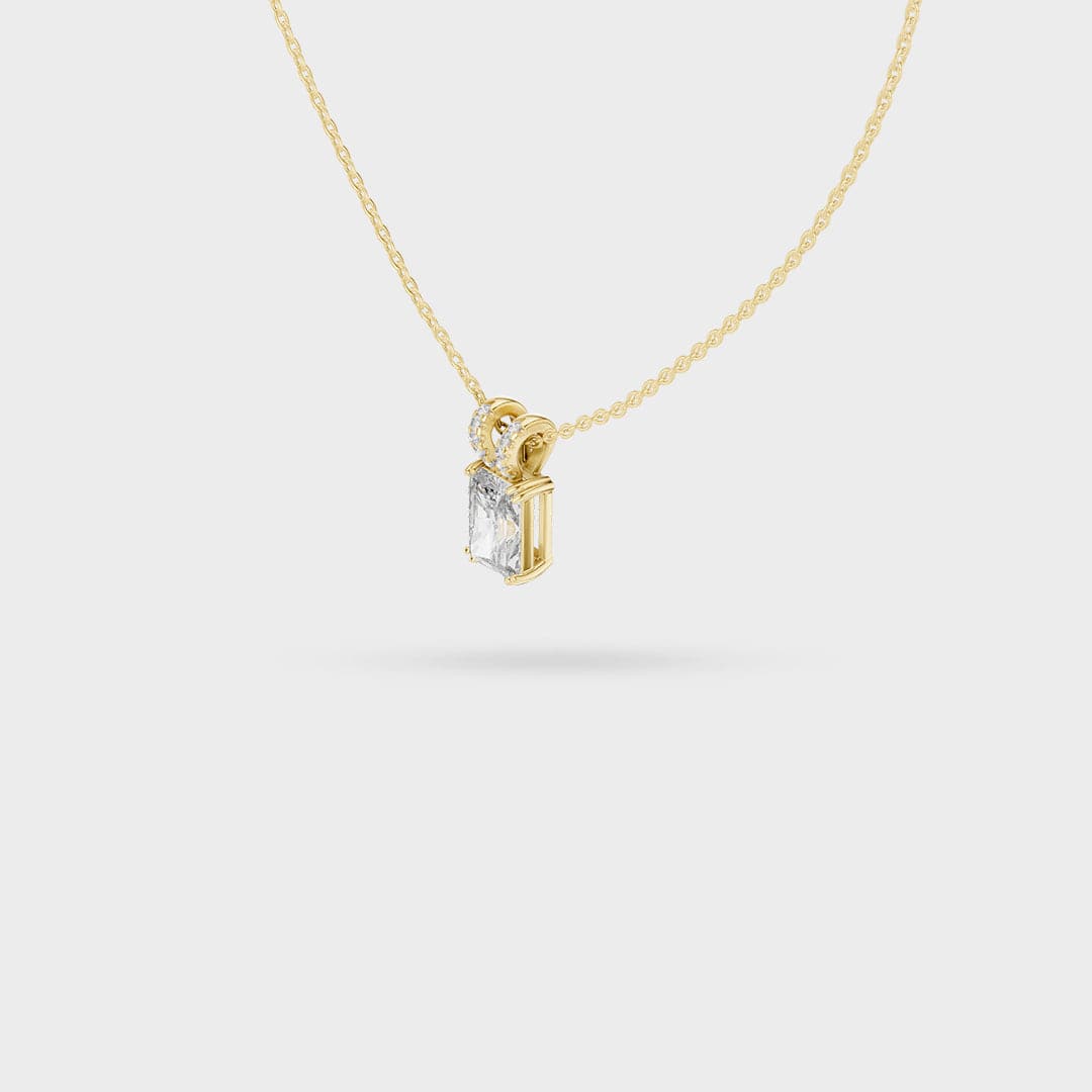 Description: This elegant necklace centers on a brilliant rectangular, step-cut gemstone that offers exceptional clarity and a beautiful flash of light. The stone is held by a secure prong setting, emphasizing its clean, architectural lines.