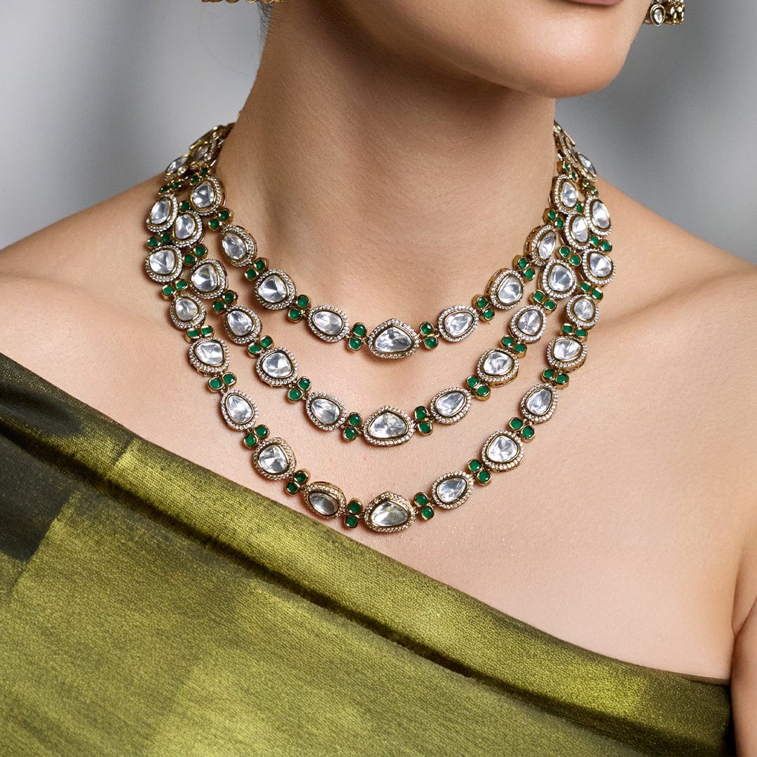 Add Polki & Green Jade Tumbles Bridal Necklace Set to the cart