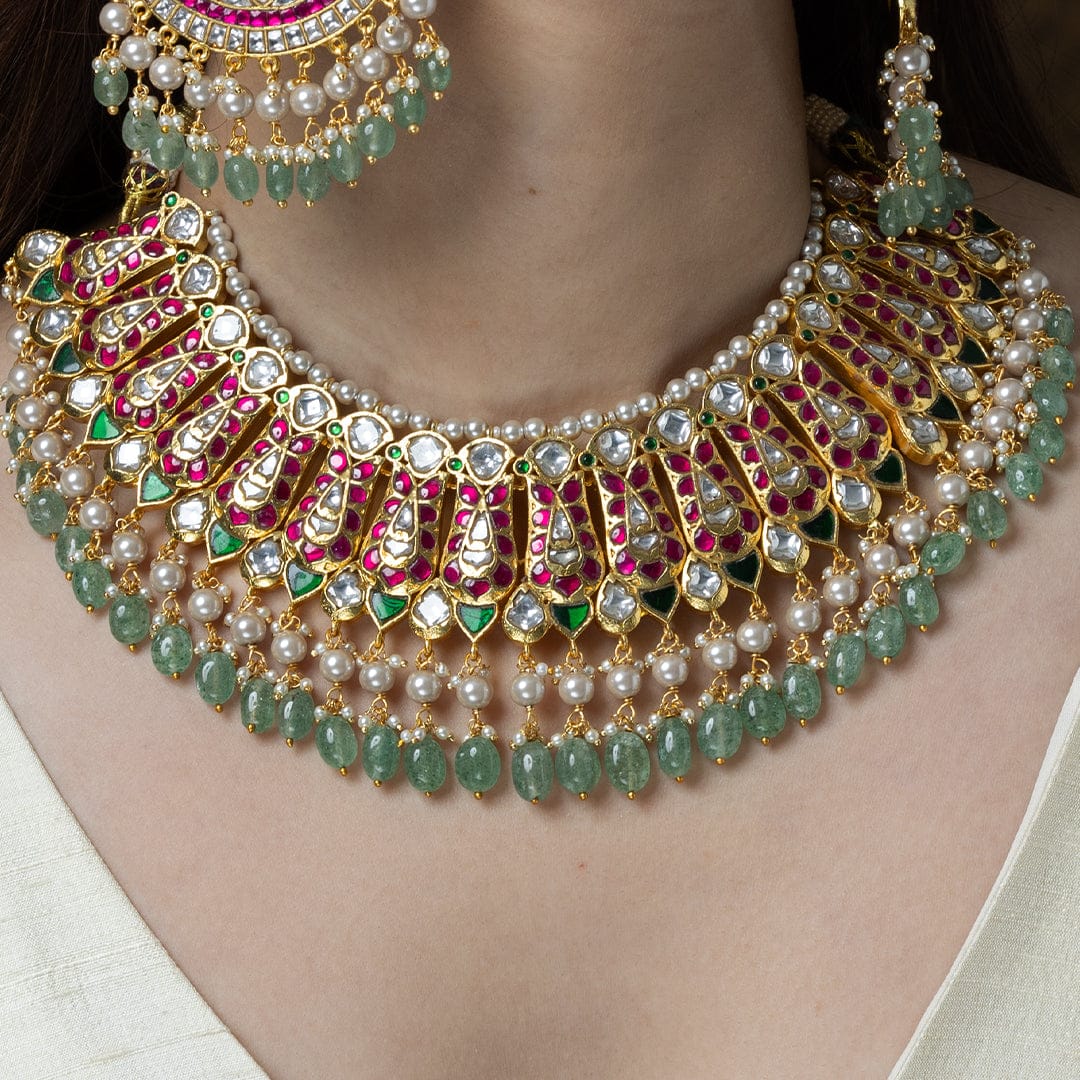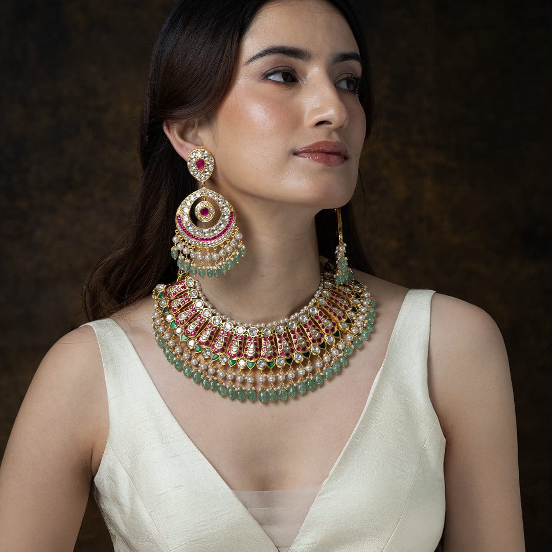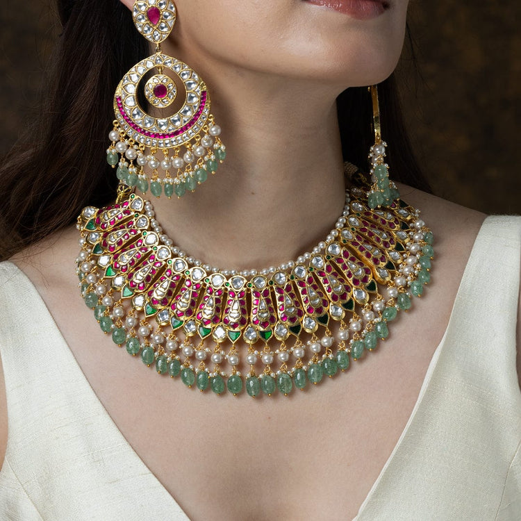 We use 22K Micron Gold Plating on brass, paired with high quality pearls, precious carved beads, semi precious stones, intricately hand painted with enamel, exquisite high quality pearls and high quality kundan that are celebrated for their durability and refinement - making every Joules by Radhika creation a piece that radiates brilliance and sophistication.