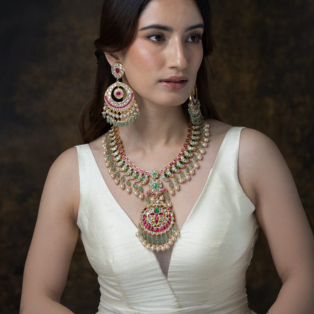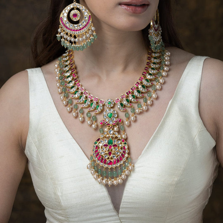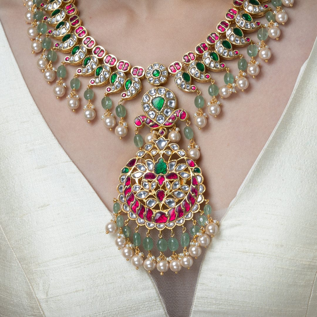 We use 22K Micron Gold Plating on brass, paired with high quality pearls, precious carved beads, semi precious stones, intricately hand painted with enamel, exquisite high quality pearls and high quality kundan that are celebrated for their durability and refinement - making every Joules by Radhika creation a piece that radiates brilliance and sophistication.