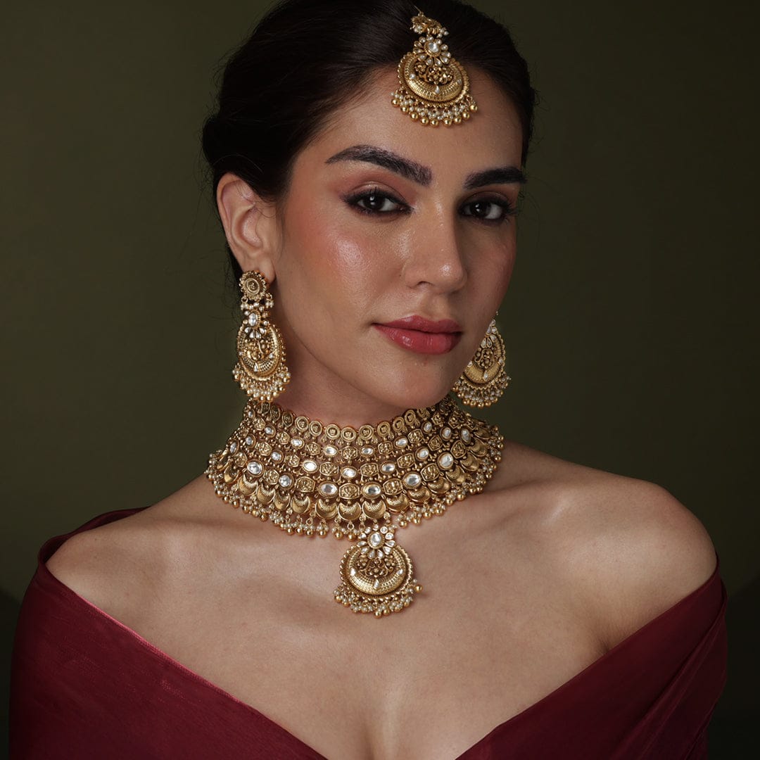 Pack Contains: 1 Necklace & 1 Pair Earring & Maangtikka