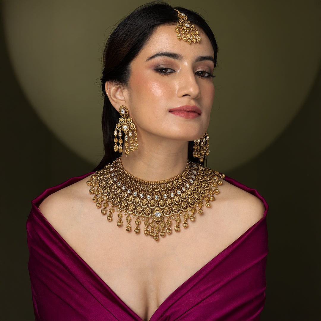 Pack Contains: 1 Necklace & 1 Pair Earring & Maangtikka