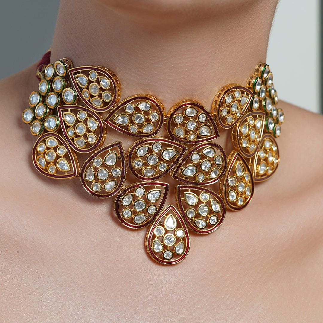 We use 22K Micron Gold Plating on brass, paired with high quality pearls, precious carved beads, semi precious stones, intricately hand painted with enamel, exquisite high quality pearls and high quality kundan that are celebrated for their durability and refinement - making every Joules by Radhika creation a piece that radiates brilliance and sophistication.