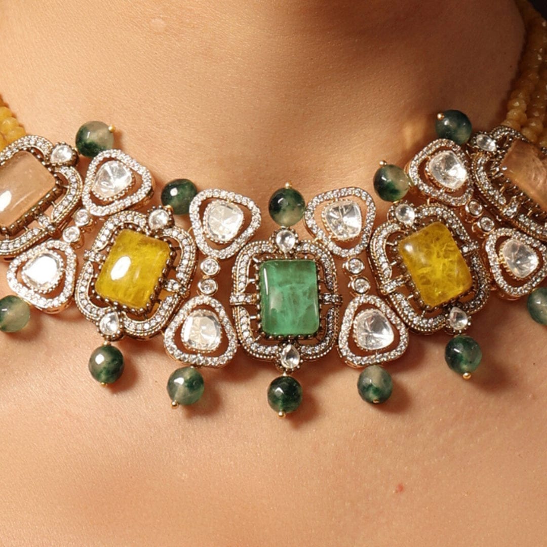 We use 22K Micron Gold Plating on brass, paired with high quality pearls, precious carved beads, semi precious stones, intricately hand painted with enamel, exquisite high quality pearls and high quality kundan that are celebrated for their durability and refinement - making every Joules by Radhika creation a piece that radiates brilliance and sophistication.