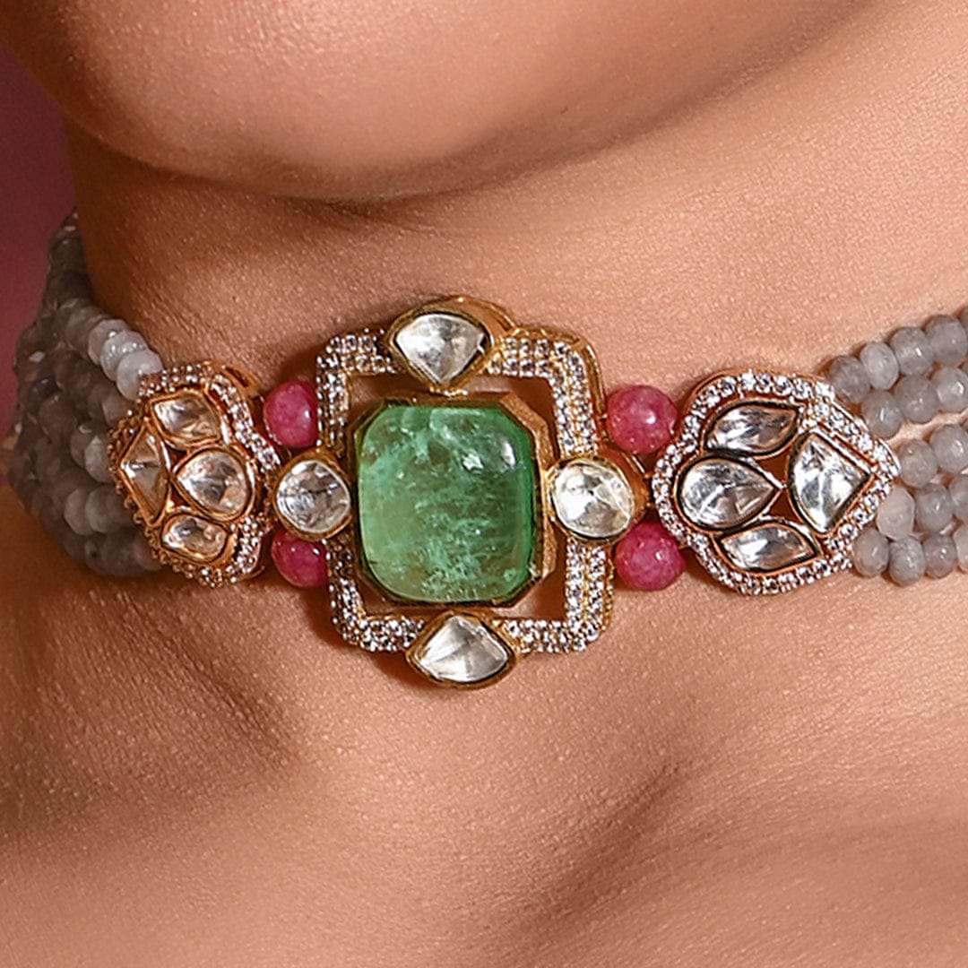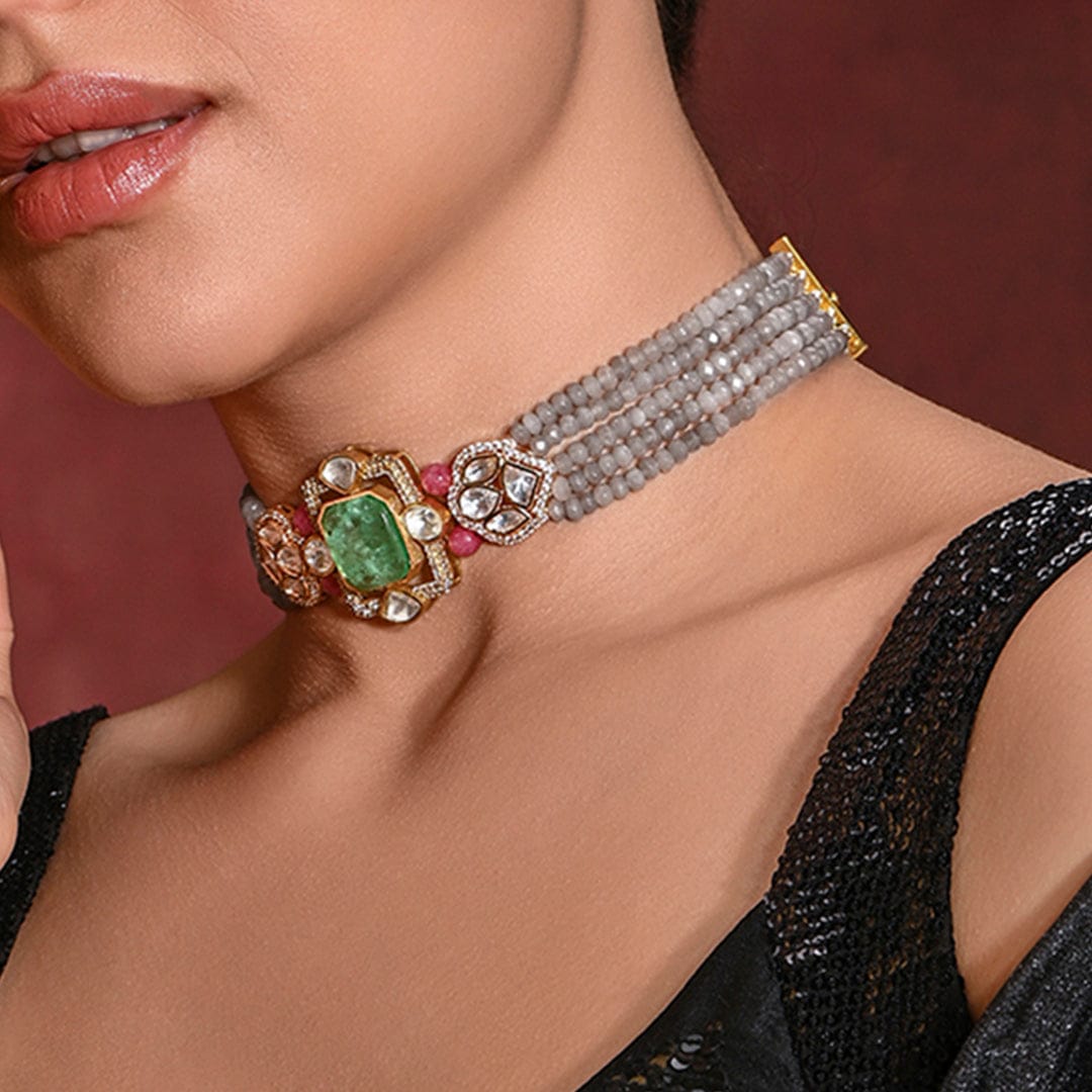 We use 22K Micron Gold Plating on brass, paired with high quality pearls, precious carved beads, semi precious stones, intricately hand painted with enamel, exquisite high quality pearls and high quality kundan that are celebrated for their durability and refinement - making every Joules by Radhika creation a piece that radiates brilliance and sophistication.