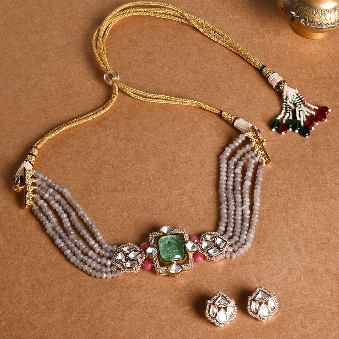 Description: Enhance your style with our chic multi-color choker accompanied by matching earrings. This vibrant set exudes elegance and charm, making it a perfect choice for adding flair to your dream outfit.