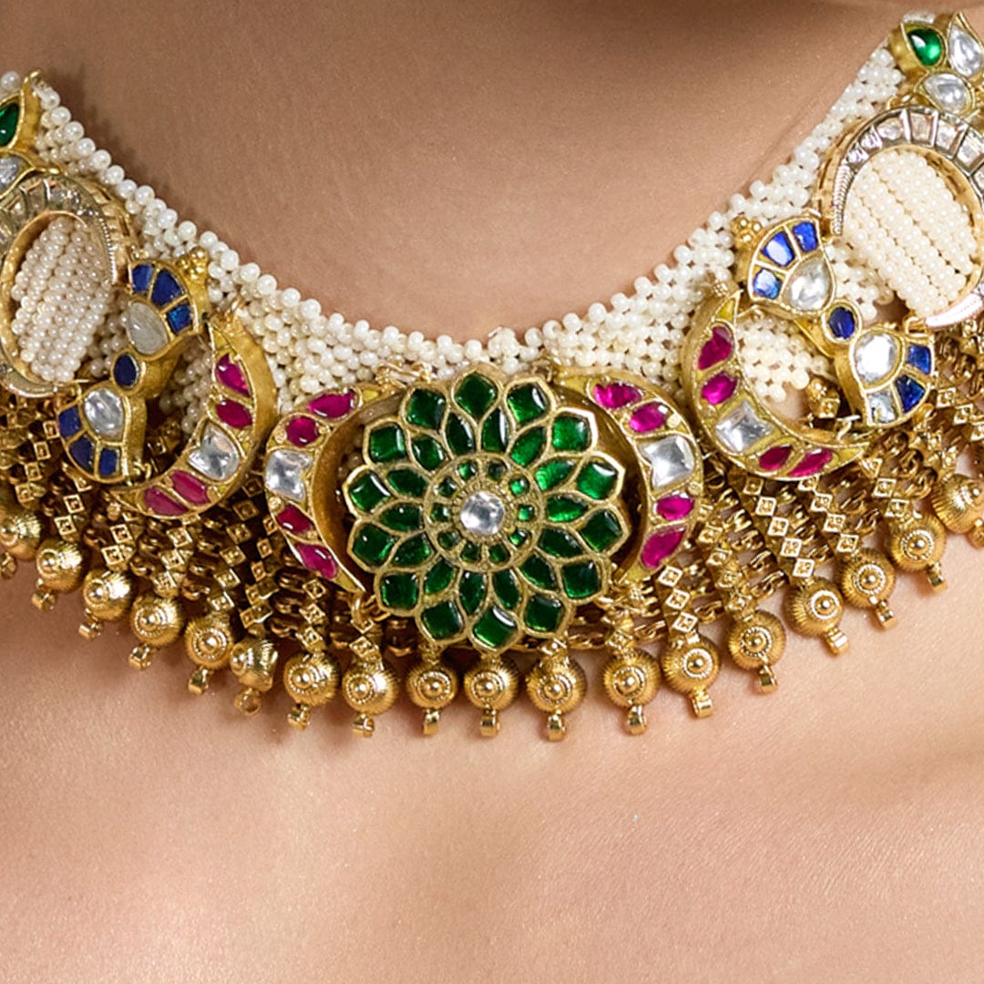 We use 22K Micron Gold Plating on brass, paired with high quality pearls, precious carved beads, semi precious stones, intricately hand painted with enamel, exquisite high quality pearls and high quality kundan that are celebrated for their durability and refinement - making every Joules by Radhika creation a piece that radiates brilliance and sophistication.
