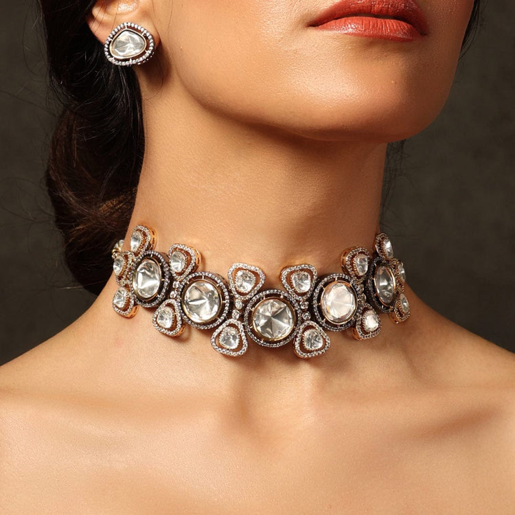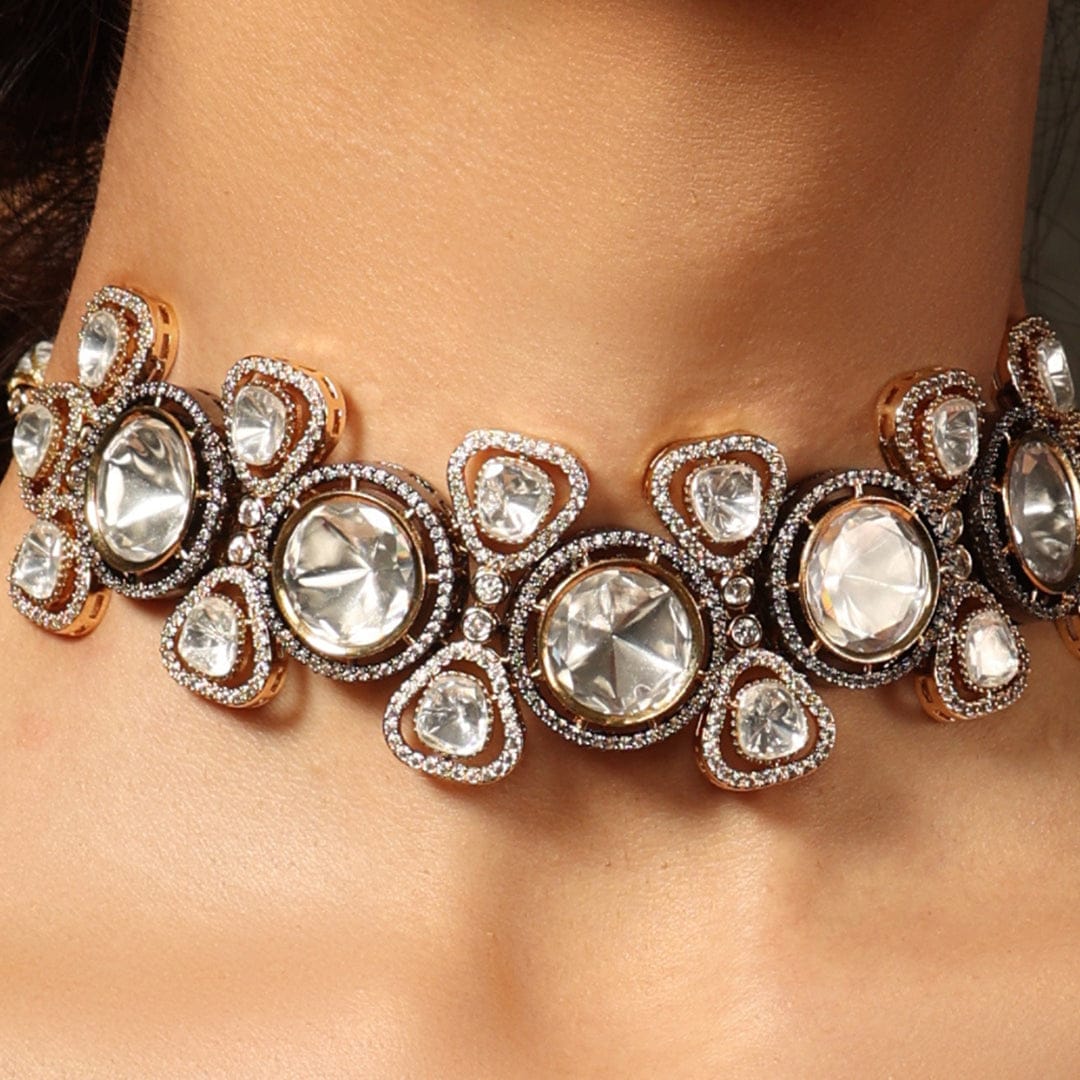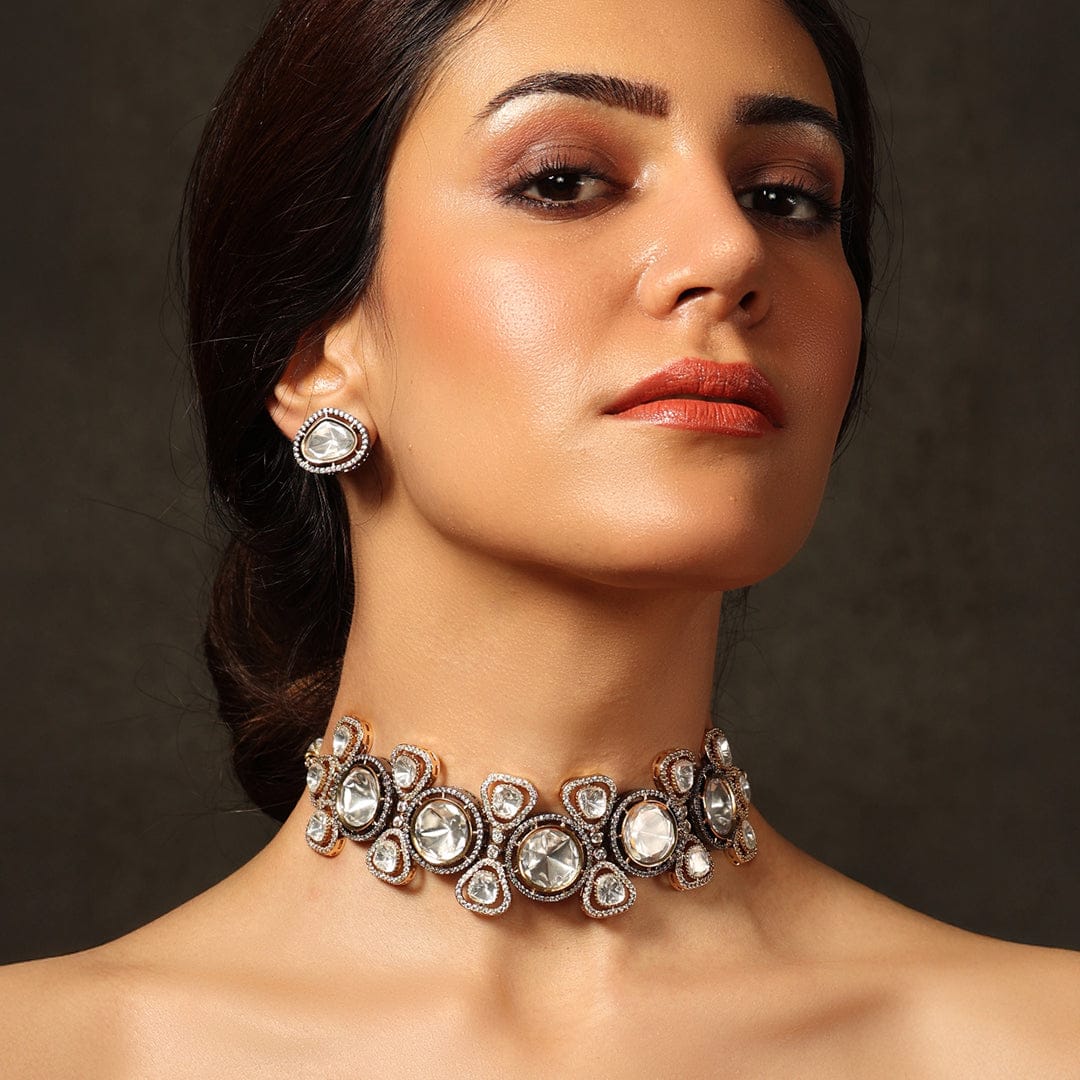 Description: A choker as if woven from fantasyreflective artistry combined with luminous alabaster gems evokes the gentle radiance of the moon, ideal for both celebratory and nocturnal ensembles..