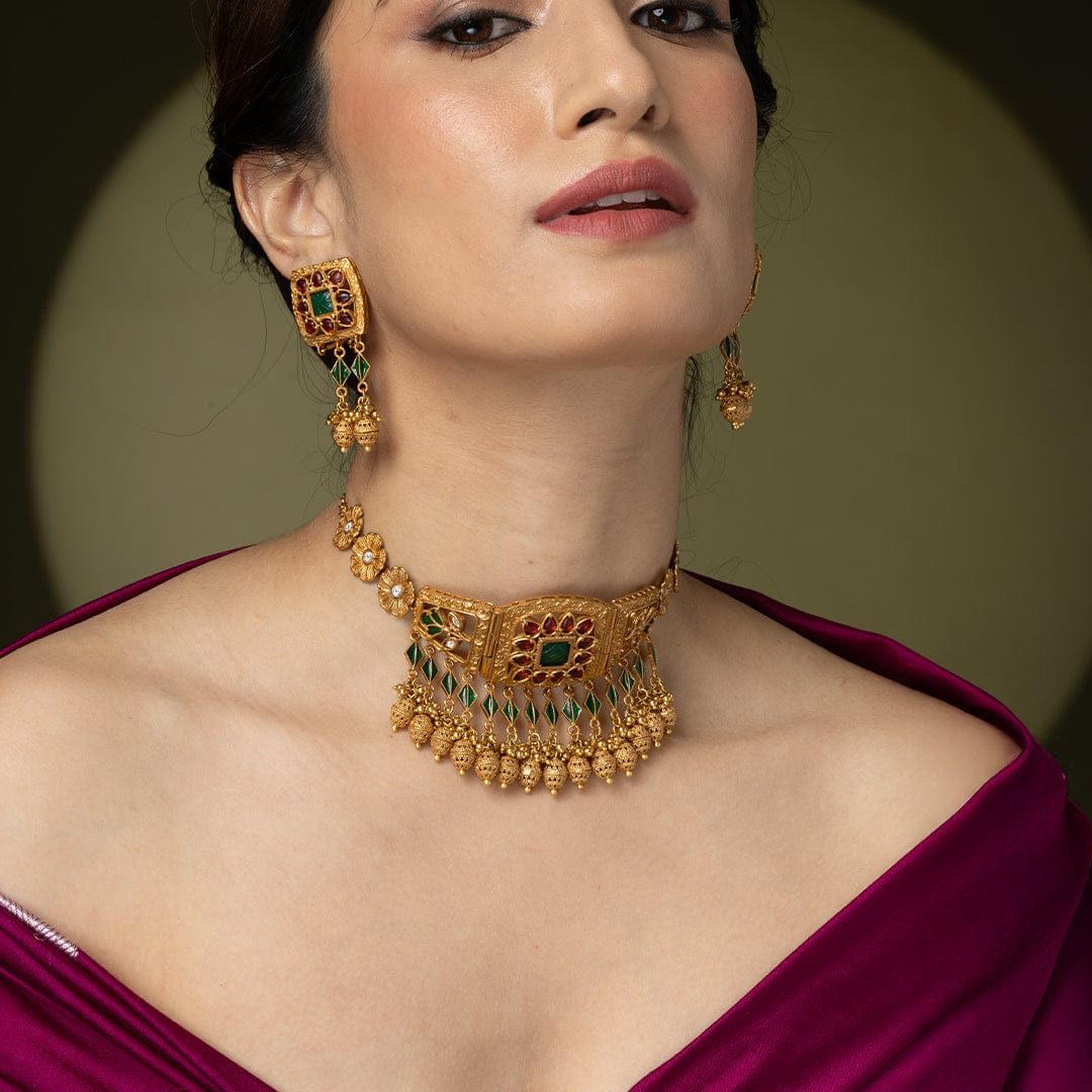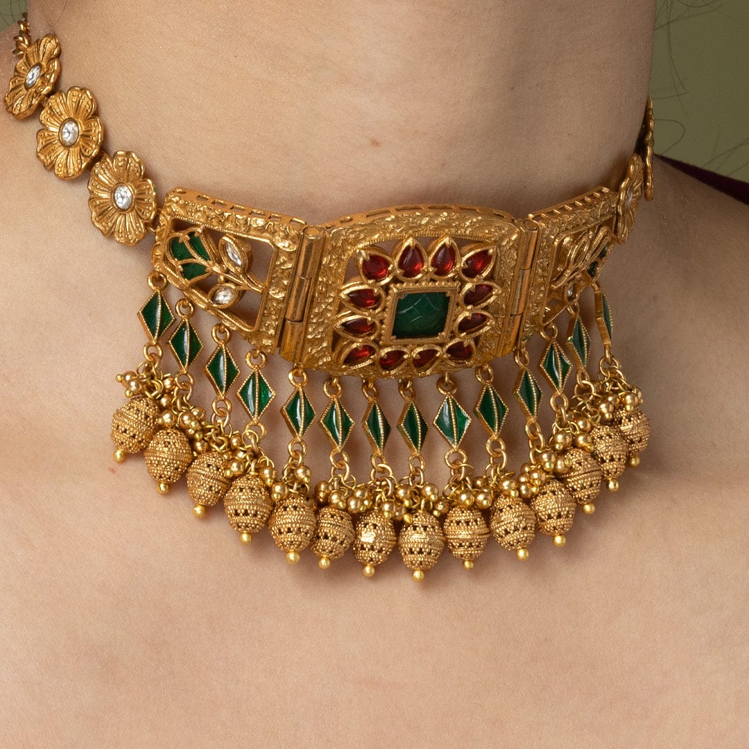We use 22K Micron Gold Plating on brass, paired with high quality pearls, precious carved beads, semi precious stones, intricately hand painted with enamel, exquisite high quality pearls and high quality kundan that are celebrated for their durability and refinement - making every Joules by Radhika creation a piece that radiates brilliance and sophistication.
