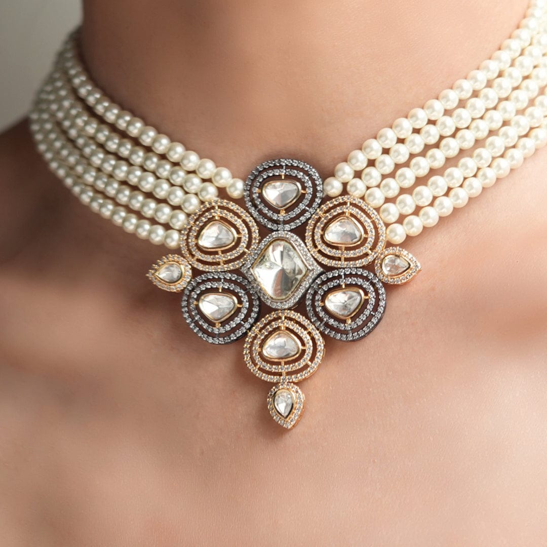 We use 22K Micron Gold Plating on brass, paired with high quality pearls, precious carved beads, semi precious stones, intricately hand painted with enamel, exquisite high quality pearls and high quality kundan that are celebrated for their durability and refinement - making every Joules by Radhika creation a piece that radiates brilliance and sophistication.