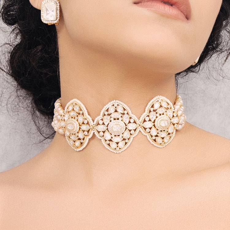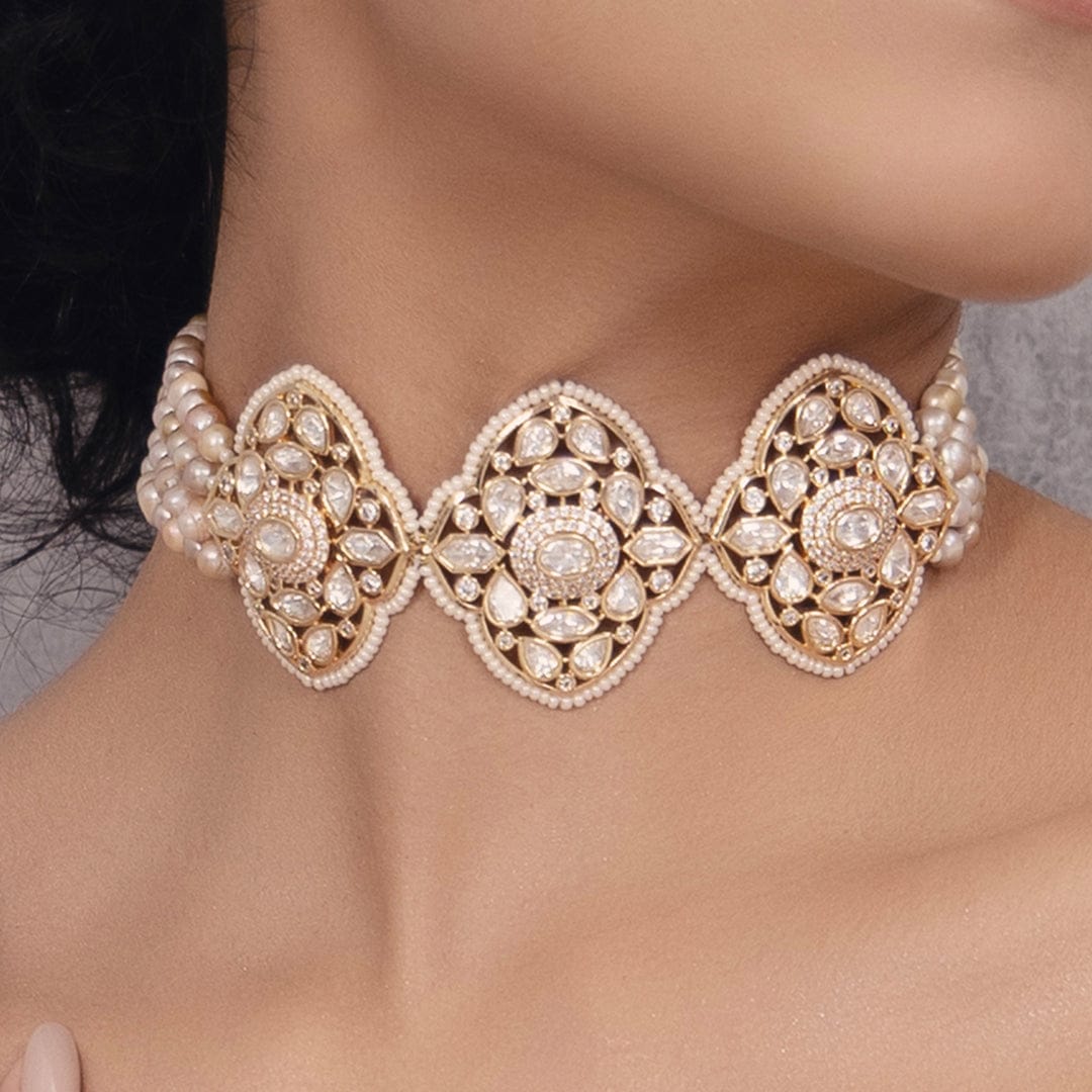 We use 22K Micron Gold Plating on brass, paired with high quality pearls, precious carved beads, semi precious stones, intricately hand painted with enamel, exquisite high quality pearls and high quality kundan that are celebrated for their durability and refinement - making every Joules by Radhika creation a piece that radiates brilliance and sophistication.