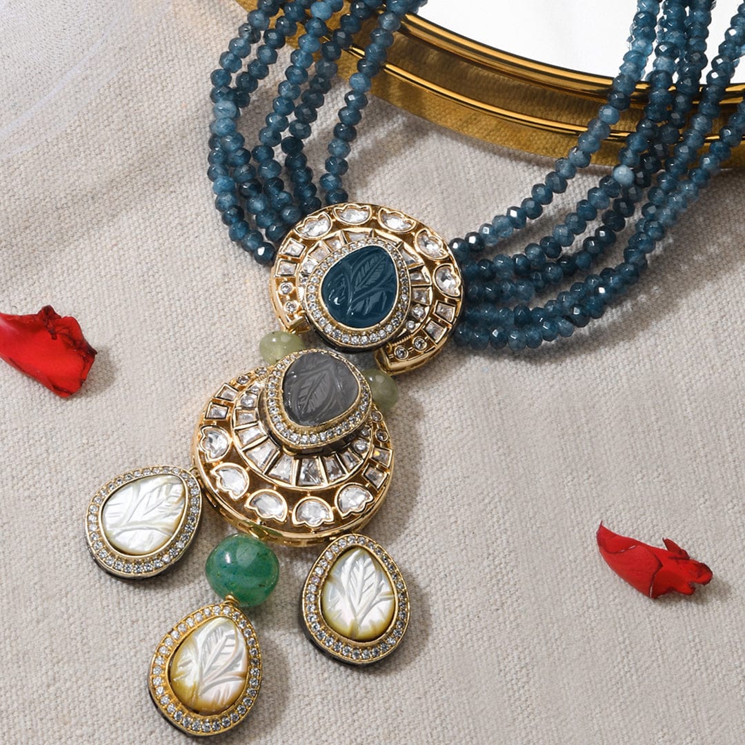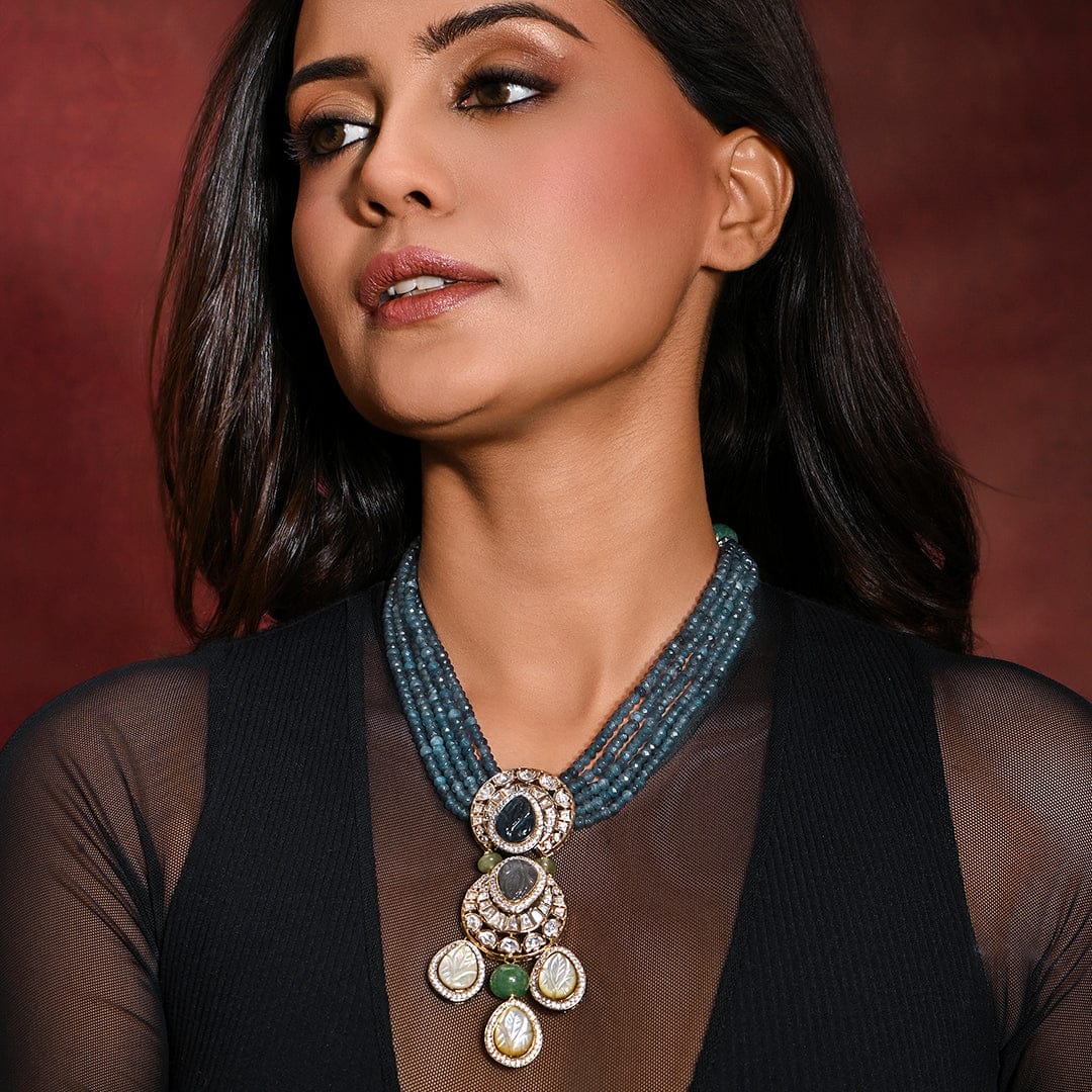 Description: Tranquility of the ocean with our serene blue beaded necklace. Crafted with intricacy, each azure bead evokes the calmness of sea, creating a stunning accessory that adds a touch of elegance to any ensemble.