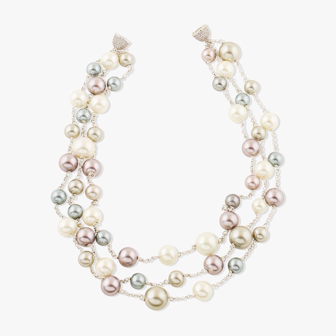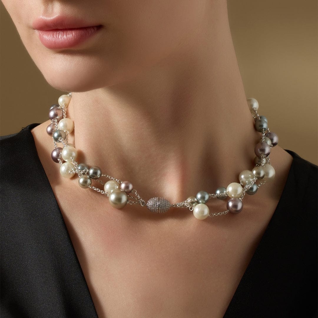 Description: The Nouren Necklace captures the essence of moonlight on water. It features silver-toned chainwork accented with soft pearls, creating a play of contrast between cool tone and warm shimmer. Finished with a magnetic clasp, this necklace lends a celestial calm to any look. Each pearl glows with its own subtle tone and surface pattern, giving your piece quiet individuality.