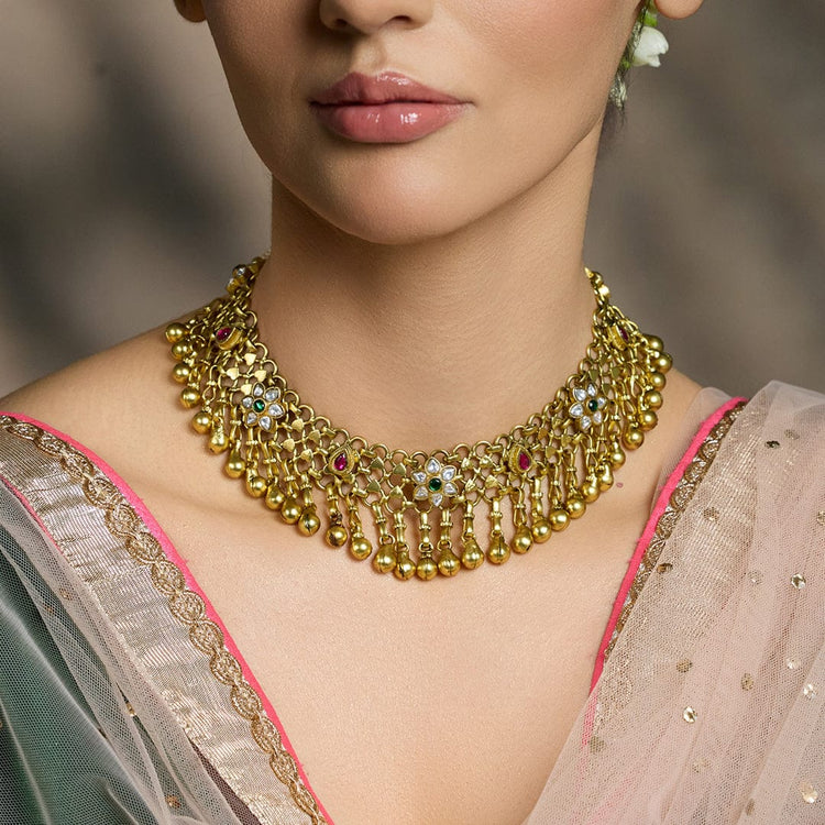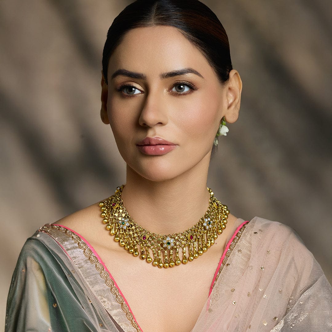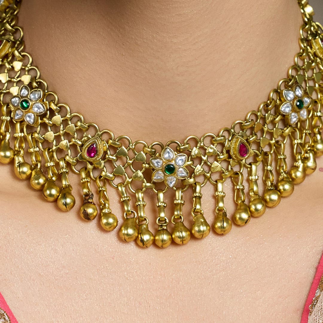 We use 22K Micron Gold Plating on brass, paired with high quality pearls, precious carved beads, semi precious stones, intricately hand painted with enamel, exquisite high quality pearls and high quality kundan that are celebrated for their durability and refinement - making every Joules by Radhika creation a piece that radiates brilliance and sophistication.