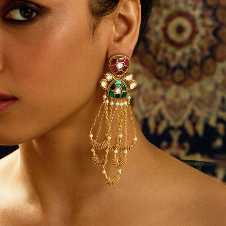 We use 22K Micron Gold Plating on brass, paired with high quality pearls, precious carved beads, semi precious stones, intricately hand painted with enamel, exquisite high quality pearls and high quality kundan that are celebrated for their durability and refinement - making every Joules by Radhika creation a piece that radiates brilliance and sophistication.