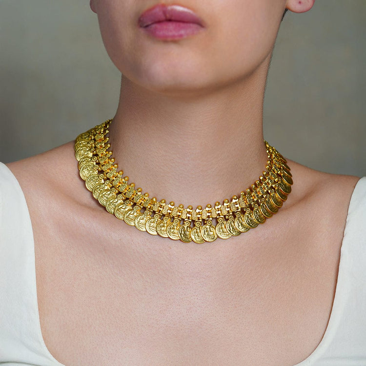 Description: Enhance your personality with the Gold Contour Necklace, a sleek necklace that gracefully enhances any outfit with modern elegance and golden charm.
