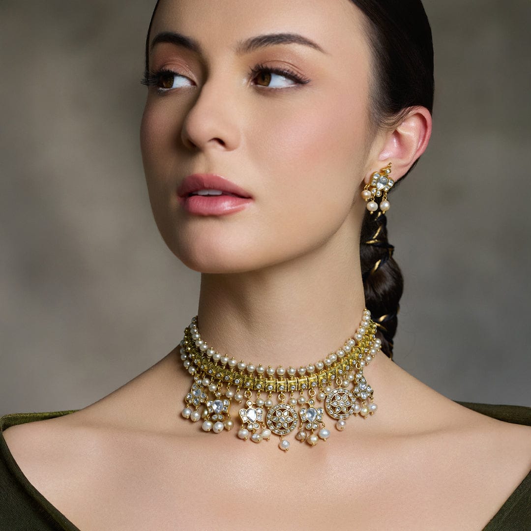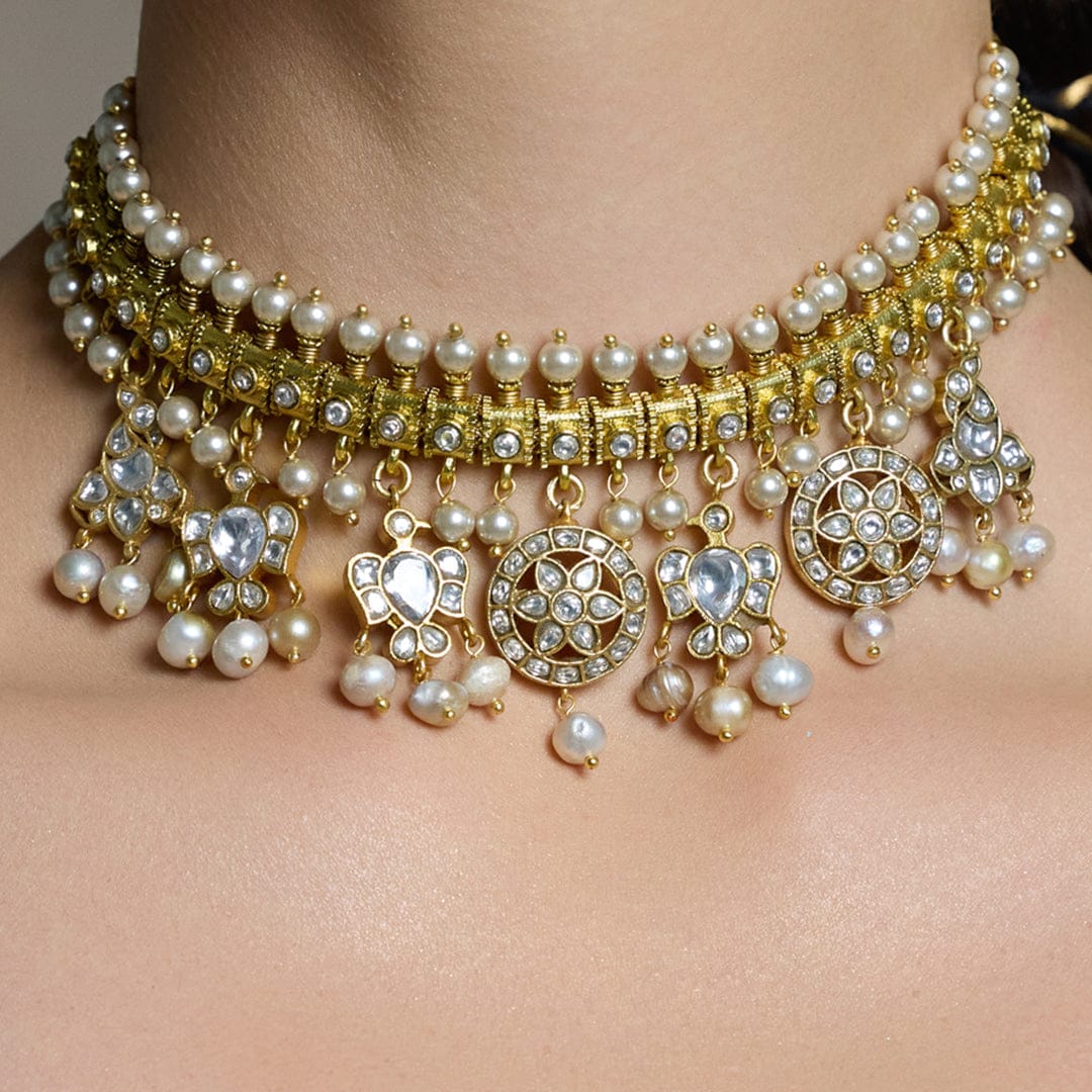 We use 22K Micron Gold Plating on brass, paired with high quality pearls, precious carved beads, semi precious stones, intricately hand painted with enamel, exquisite high quality pearls and high quality kundan that are celebrated for their durability and refinement - making every Joules by Radhika creation a piece that radiates brilliance and sophistication.