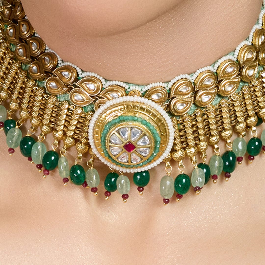 Description: Add a royal charm to your look with the GraceAura Antique Choker, featuring intricate detailing, antique finish, and traditional elegance — perfect for weddings, festivals, and grand celebrations.