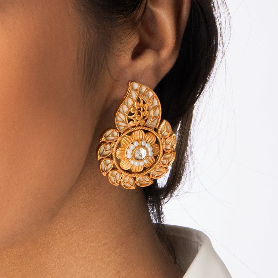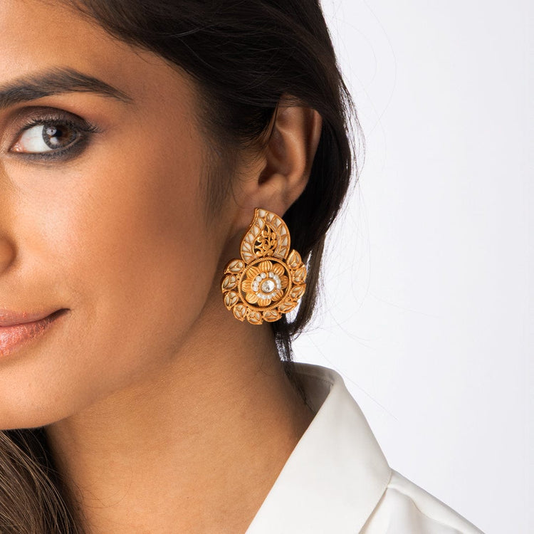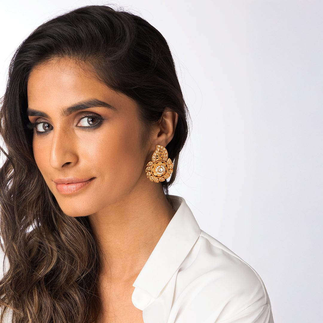 Stone Drop Flower Earrings