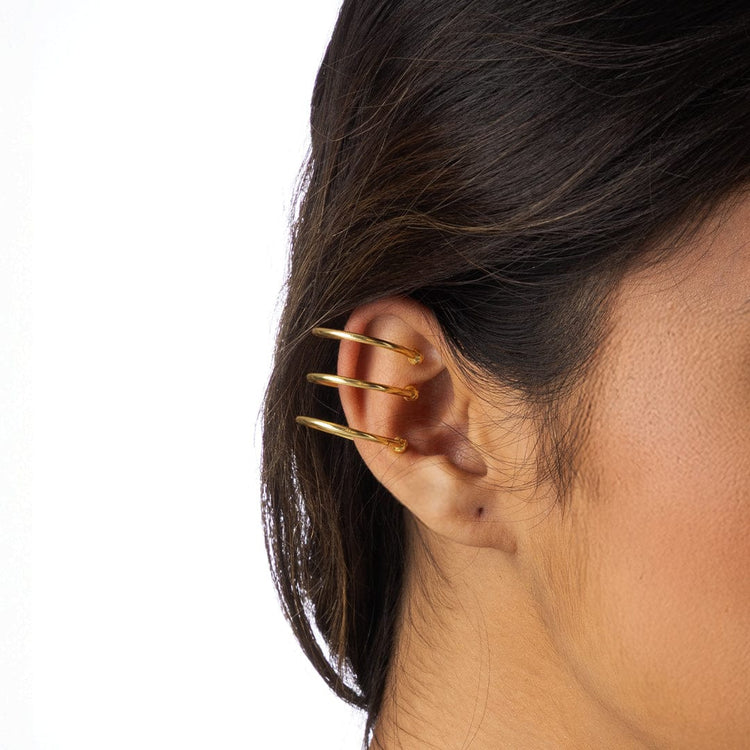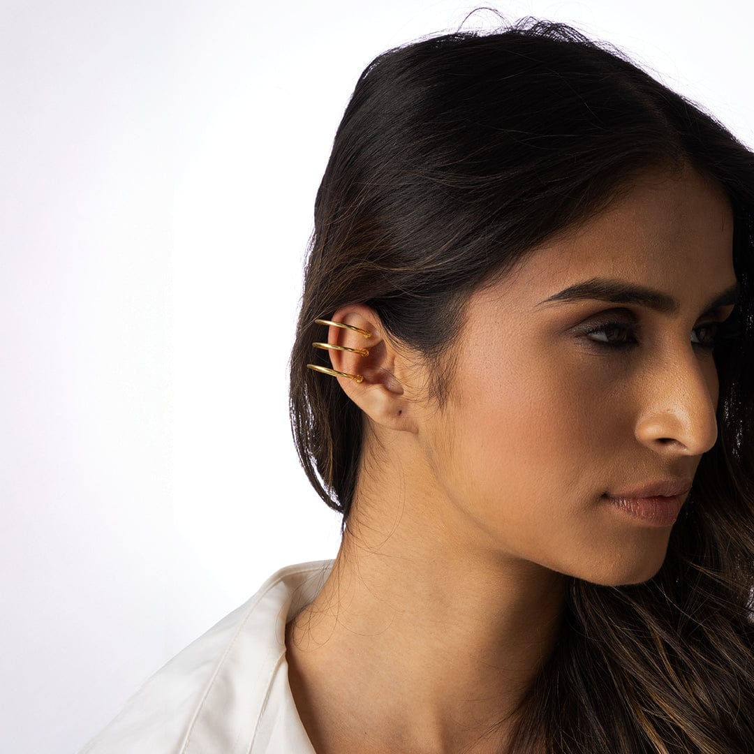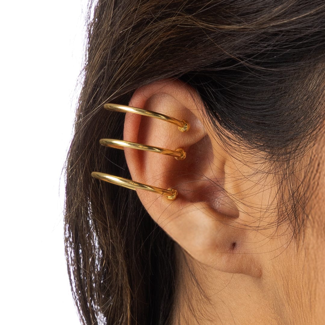 Description: This triple hoop earrings offers a sleek, modern look with its clean, curved design. Lightweight and stylish, it adds an edgy, contemporary touch to any outfit.