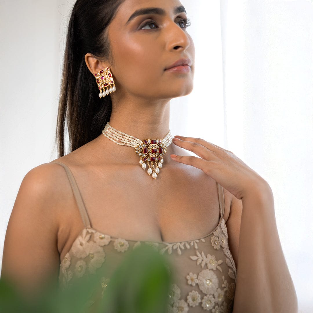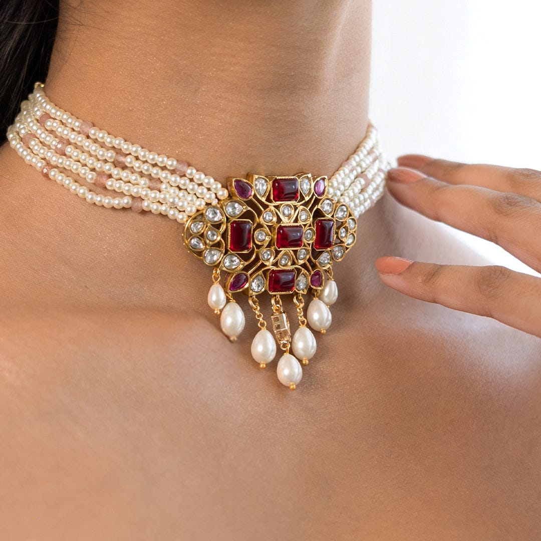 We use 22K Micron Gold Plating on brass, paired with high quality pearls, precious carved beads, semi precious stones, intricately hand painted with enamel, exquisite high quality pearls and high quality kundan that are celebrated for their durability and refinement - making every Joules by Radhika creation a piece that radiates brilliance and sophistication.