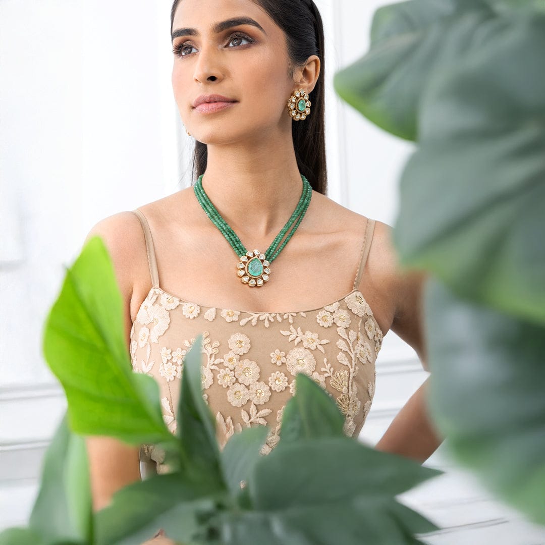 We use 22K Micron Gold Plating on brass, paired with high quality pearls, precious carved beads, semi precious stones, intricately hand painted with enamel, exquisite high quality pearls and high quality kundan that are celebrated for their durability and refinement - making every Joules by Radhika creation a piece that radiates brilliance and sophistication.