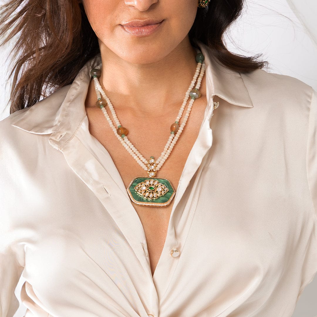 Add Green Bead Pendant Necklace Set to the cart
