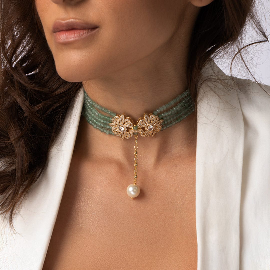 Add Polki-Pearl Exquisite Choker Necklace Set to the cart