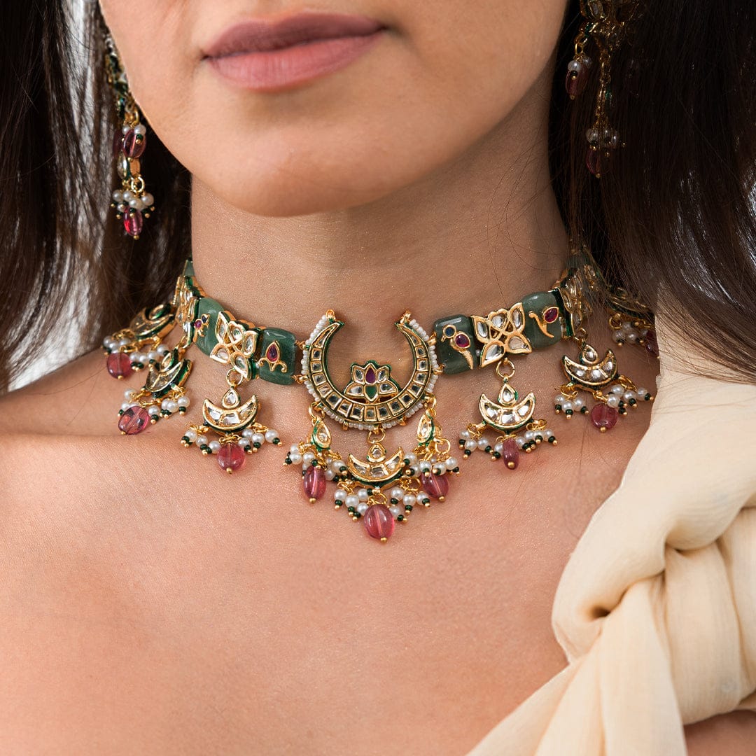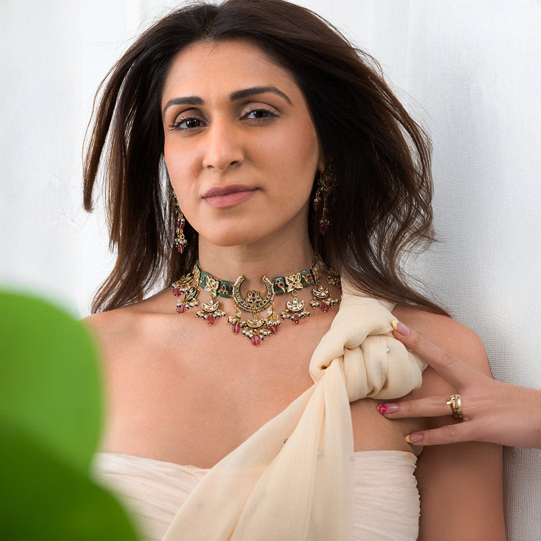 We use 22K Micron Gold Plating on brass, paired with high quality pearls, precious carved beads, semi precious stones, intricately hand painted with enamel, exquisite high quality pearls and high quality kundan that are celebrated for their durability and refinement - making every Joules by Radhika creation a piece that radiates brilliance and sophistication.