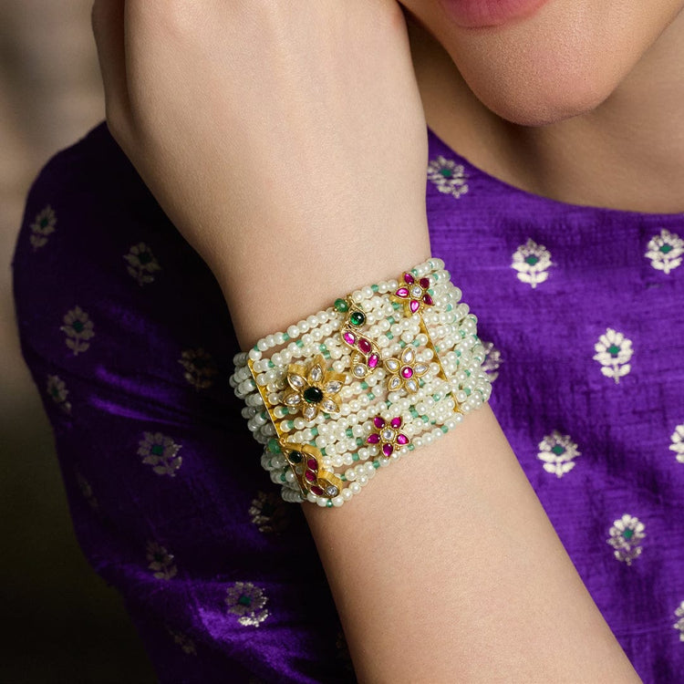 Description : A bracelet designed with multiple emerald and ruby beads is a symbol of modernity and tradition. A bold piece that enjoys elegance, tradition, and modern charm.