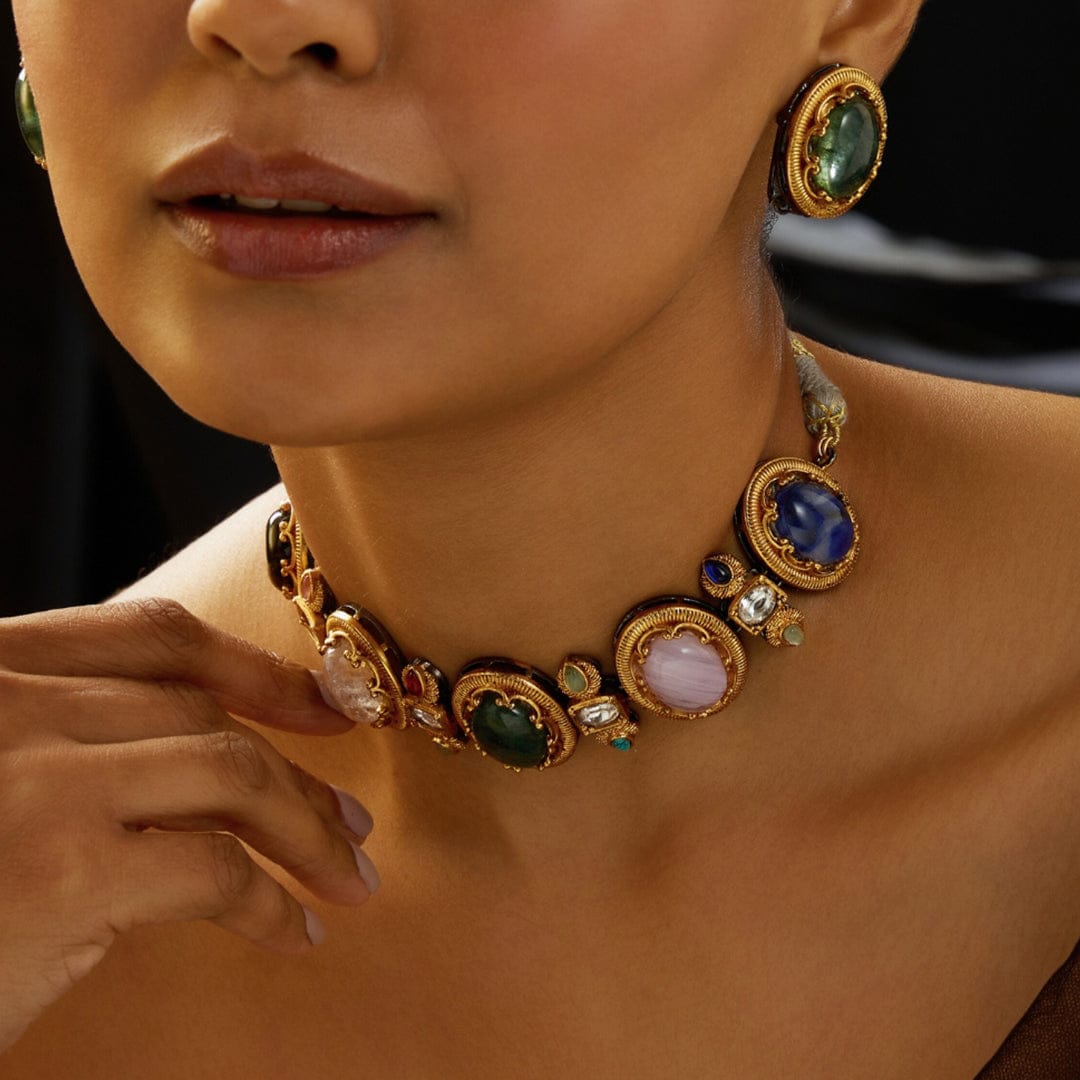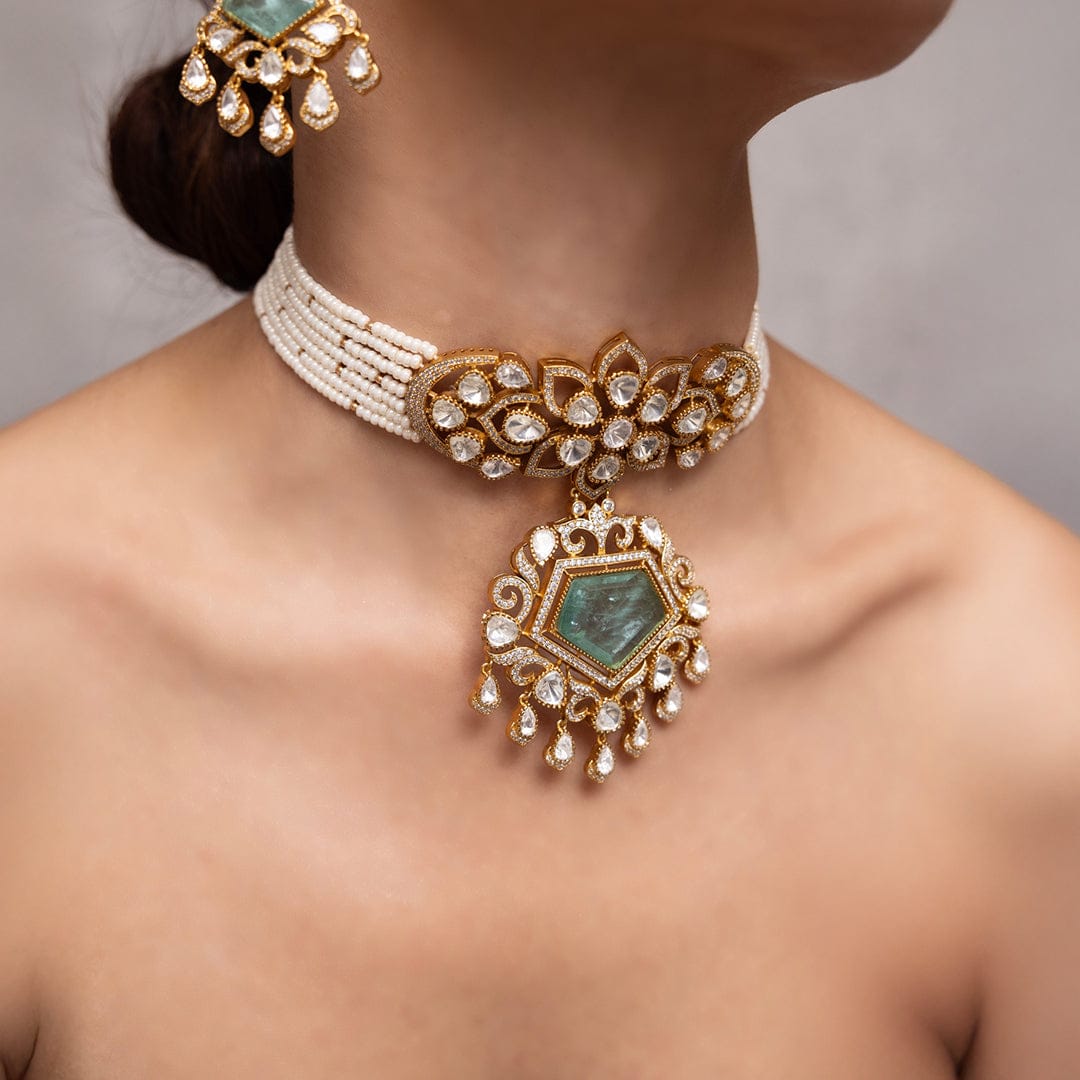 Add Stylish Golden, Green, OffWhite Necklace to the cart