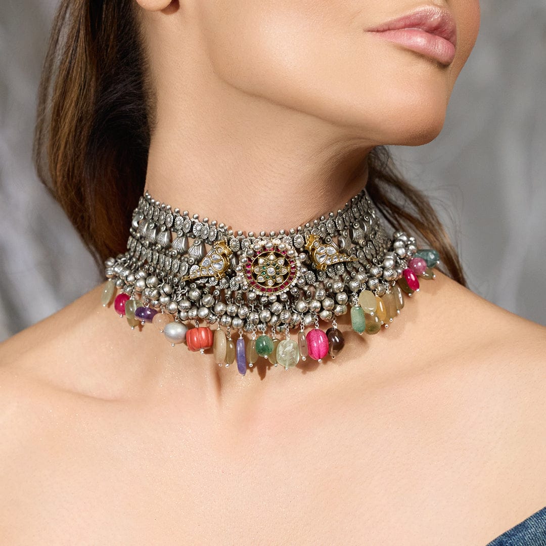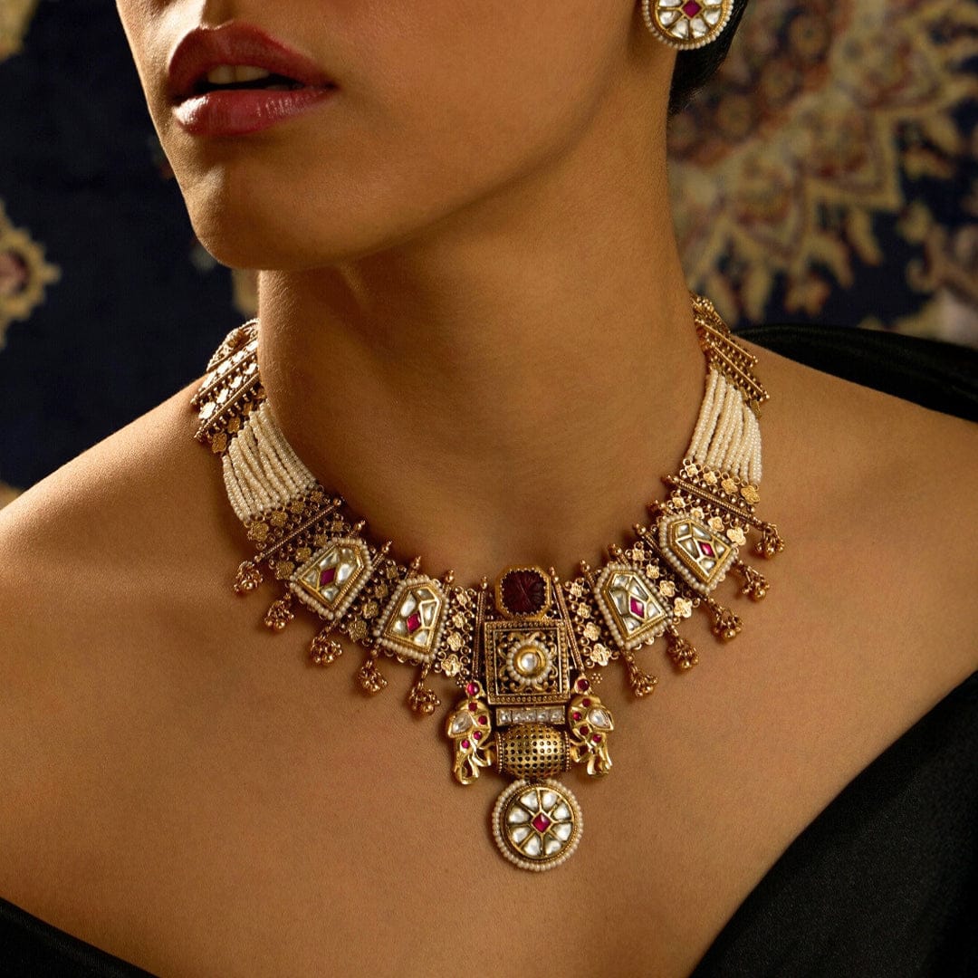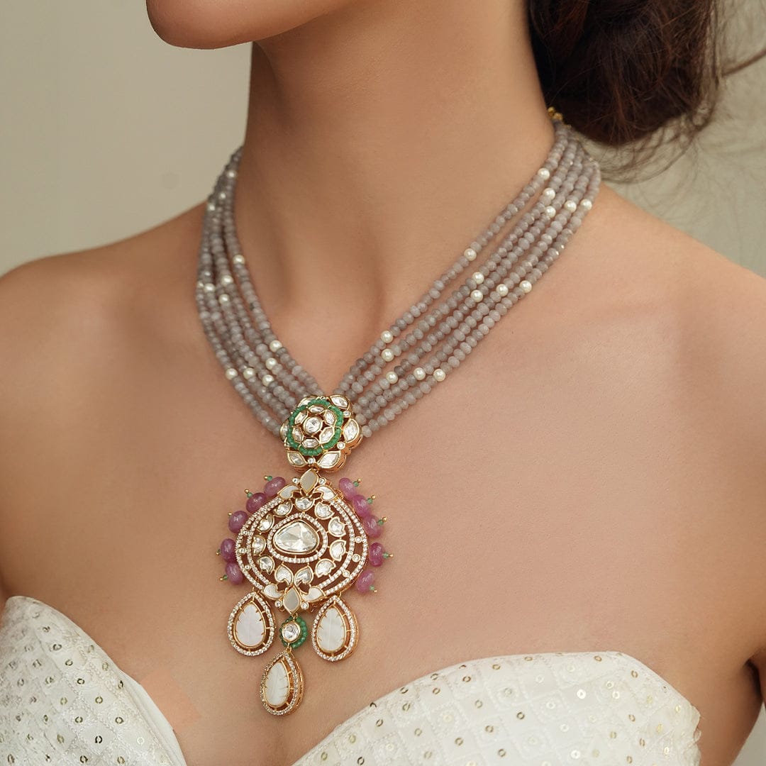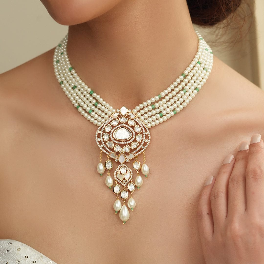 Add Gold Tone Kundan Polki Biege Necklace Set to the cart