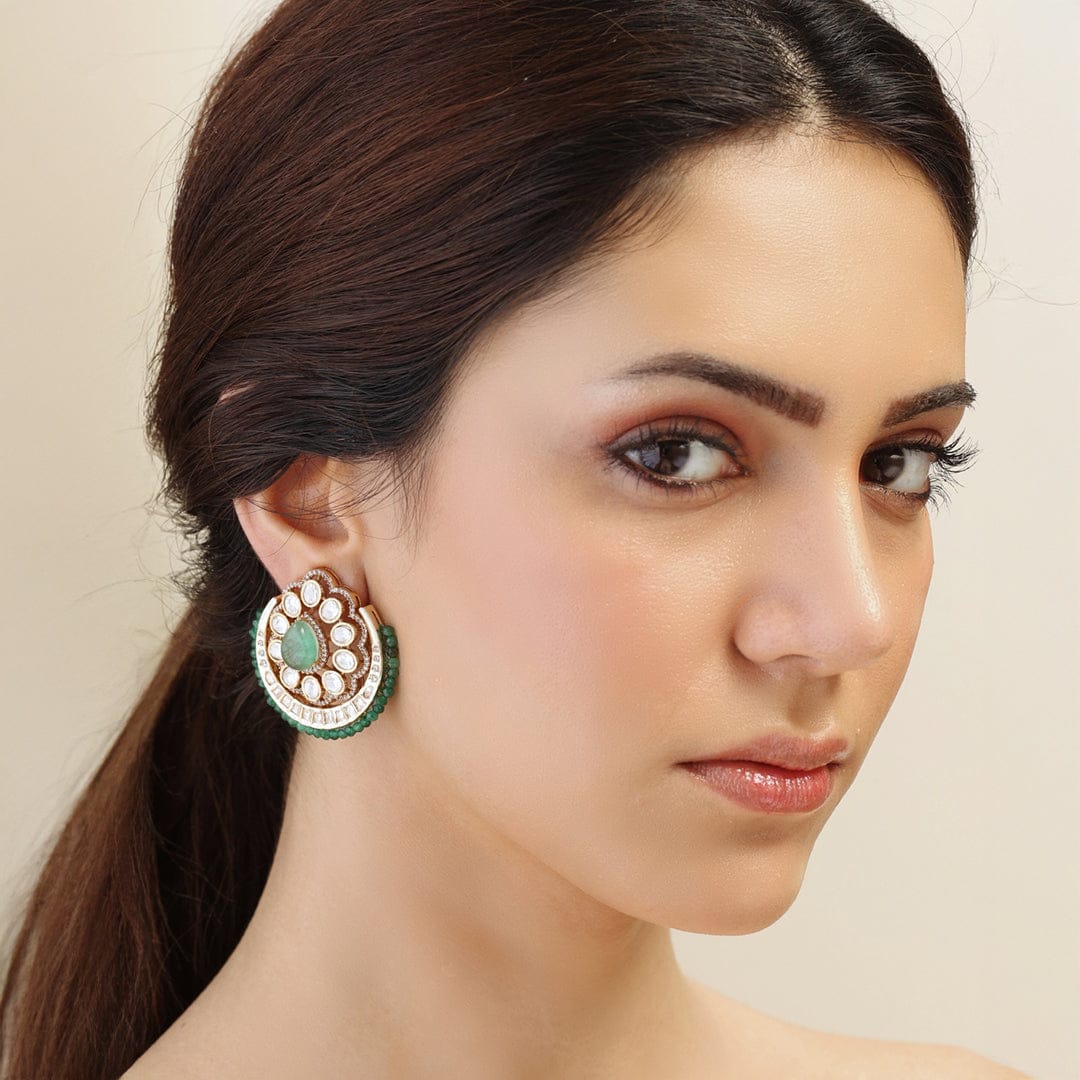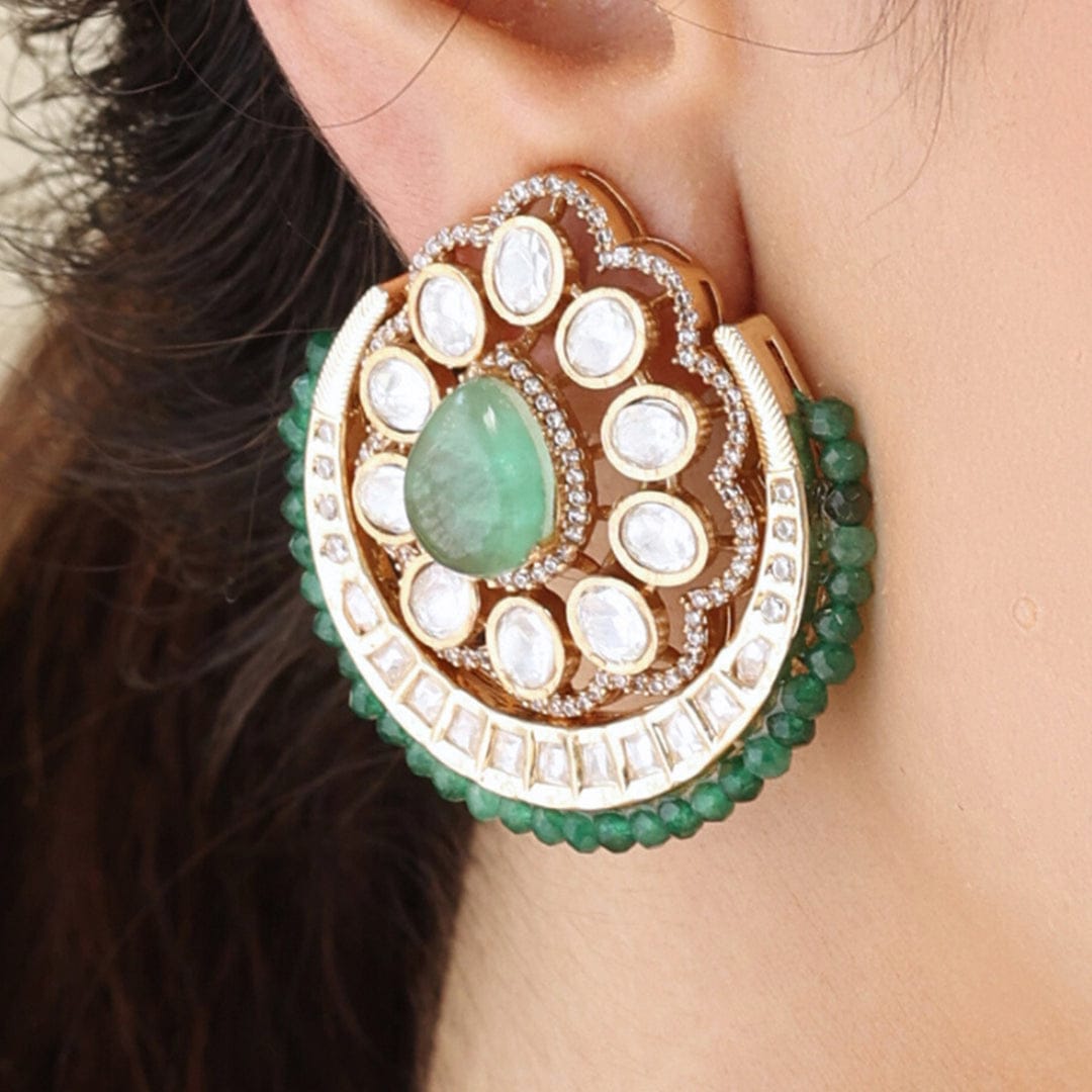 Description: Brighten your style with these exclusive polki drop earrings, showcasing precision-cut gems and ornate beadwork. An iconic selection for the contemporary bride who appreciates minimalism infused with audacious charm.