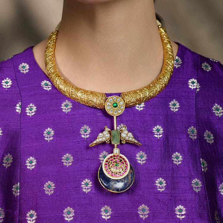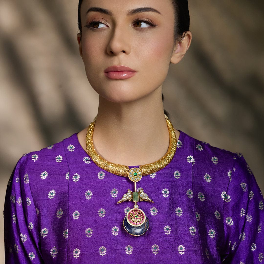 Description: Elevate your look with the Royal Flight Charm Necklace, featuring detailed gold design and a bold pendant. A perfect blend of tradition and royal look, this piece adds timeless grace to every festive or formal occasion.