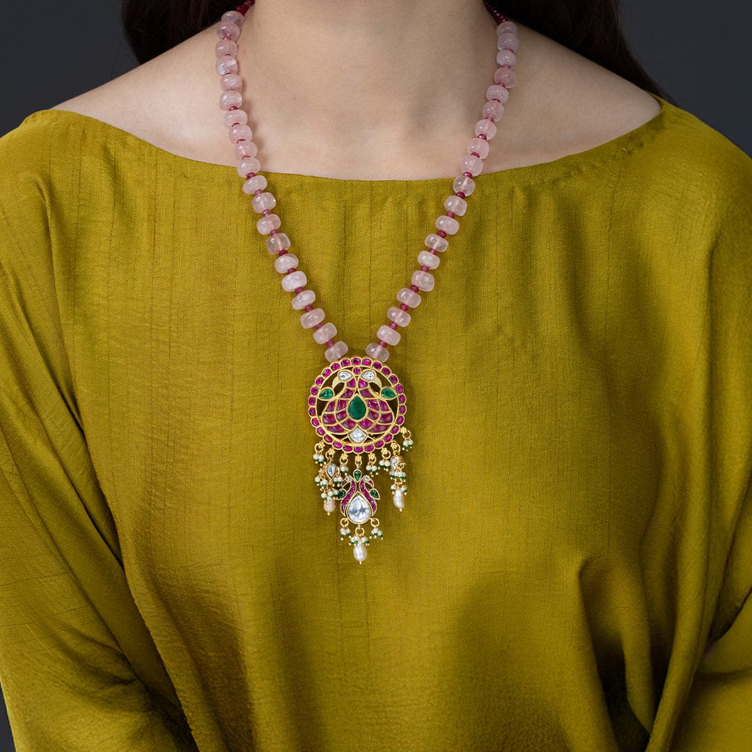 Add Pink Pearl & Emerald Carved Stone Necklace Set to the cart