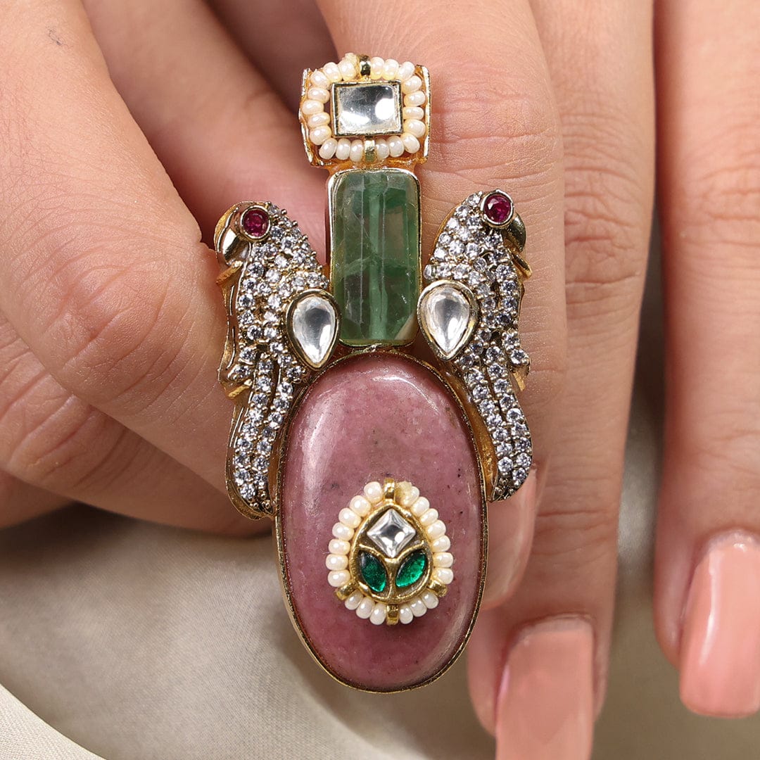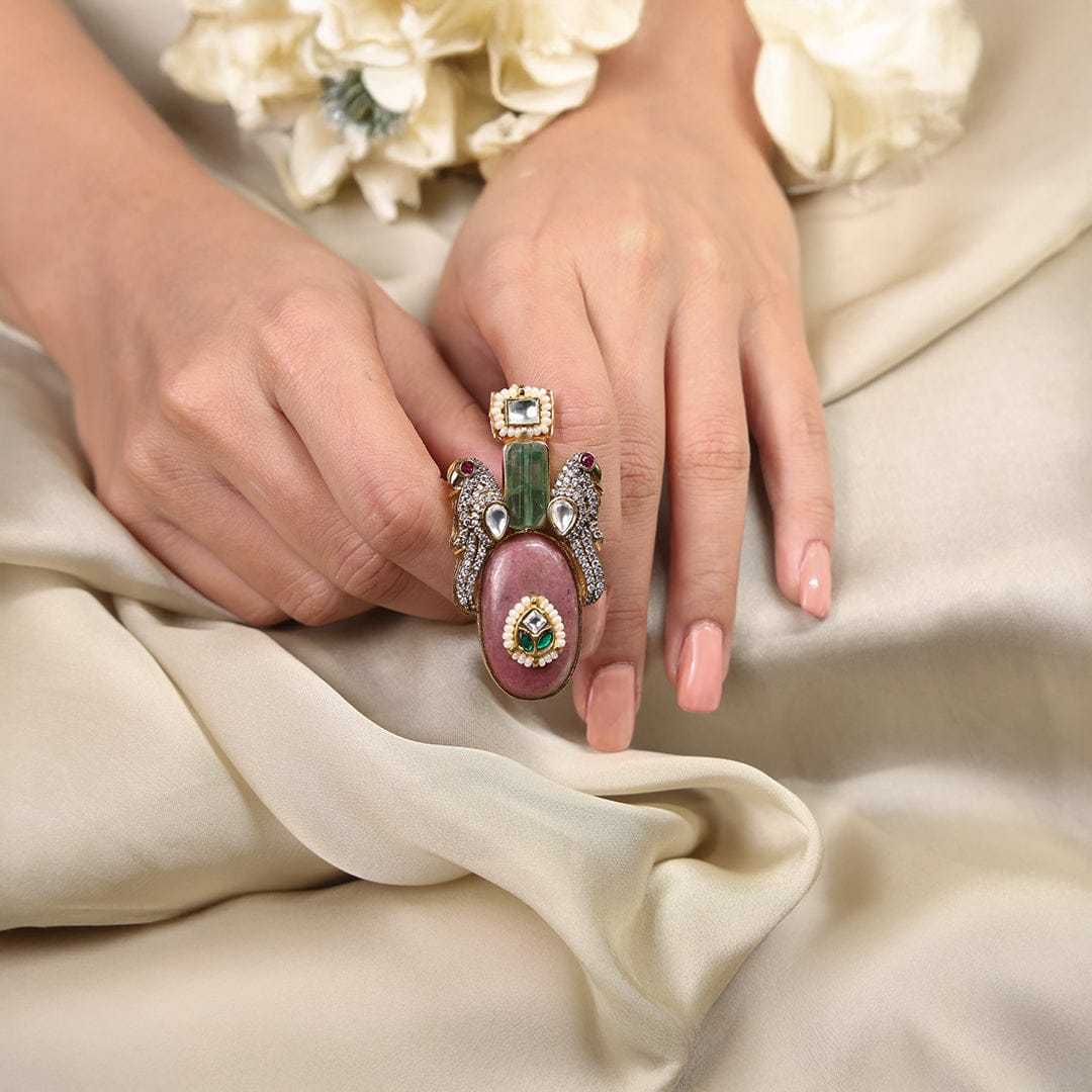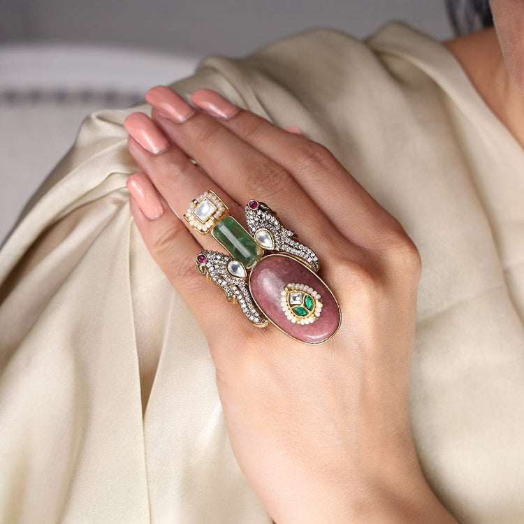 Description : The Multicolor Kundan ring features delicate stones with detailing. Flaunts an indo-western style and is ready to wear with western and indo-western outfits..