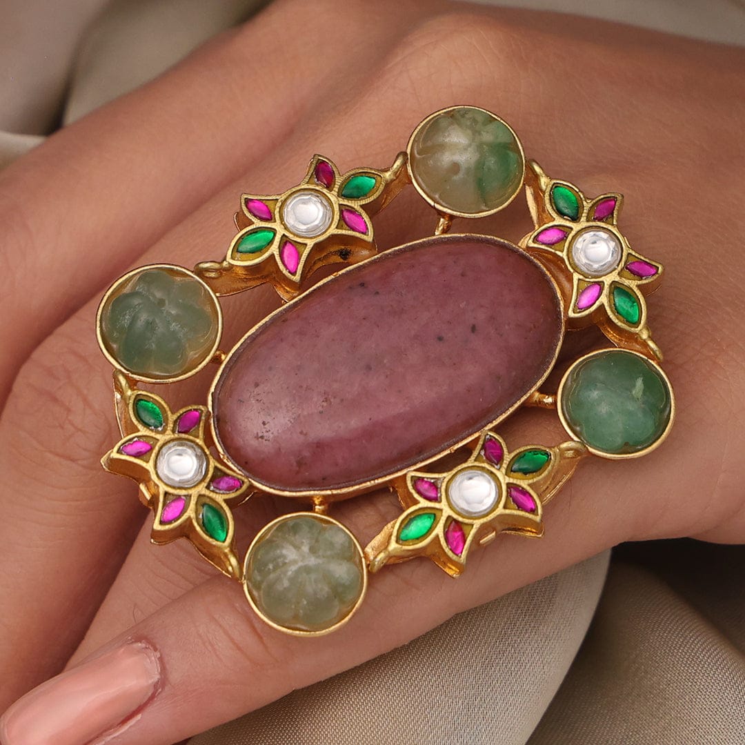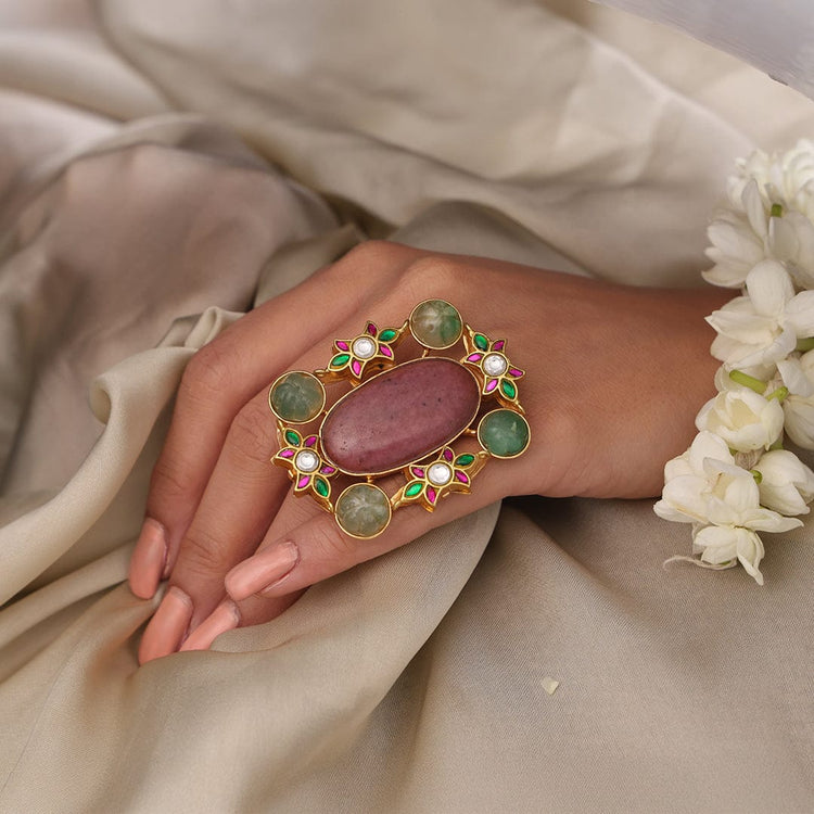 Description : The Pink Blossom Heritage Ring features a delicate pink stone, beautifully framed with floral artistry. This blend of tradition and elegance makes it perfect for weddings, festivals, and cultural events