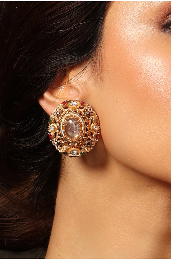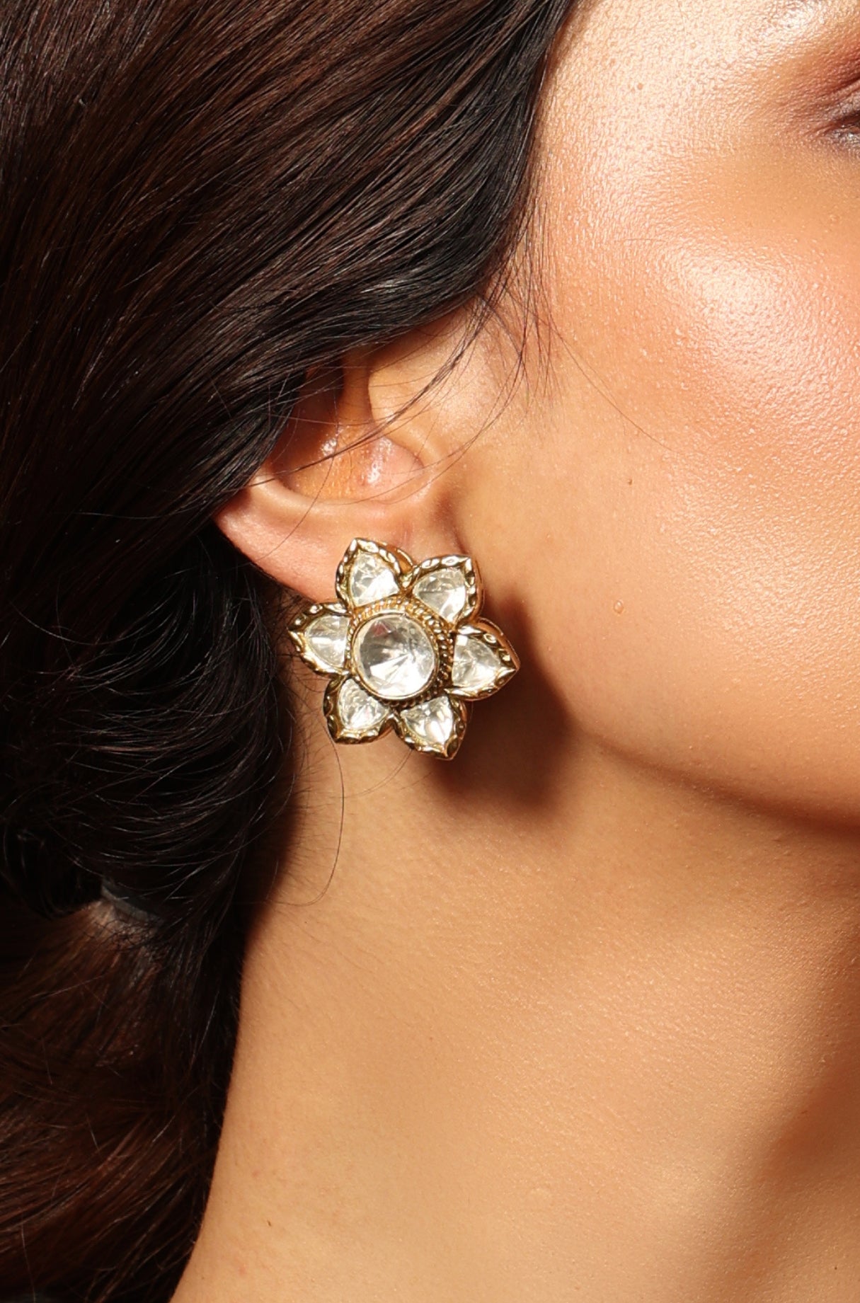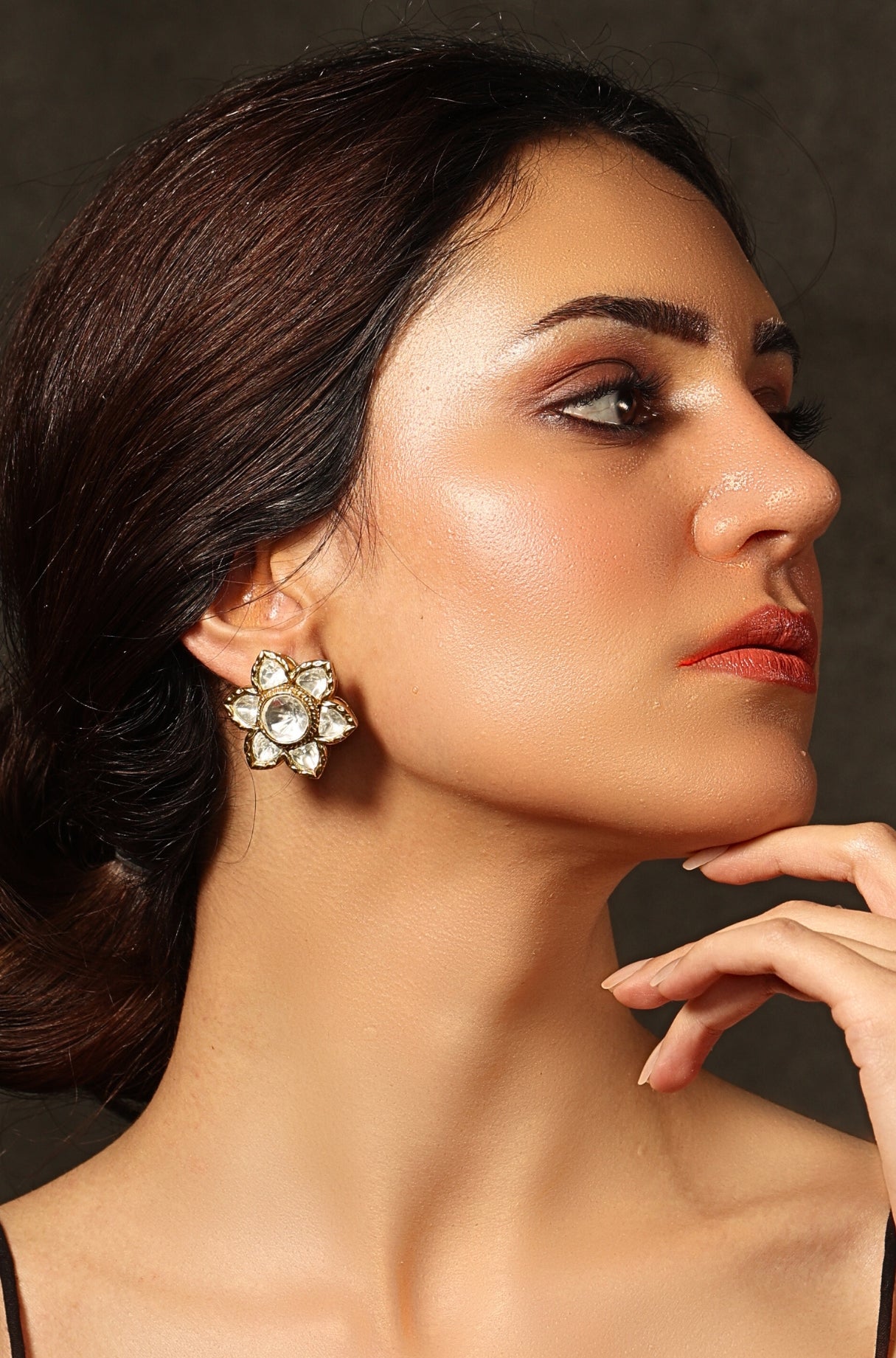 Classic Gold Kundan Polki Studs - Joules by Radhika