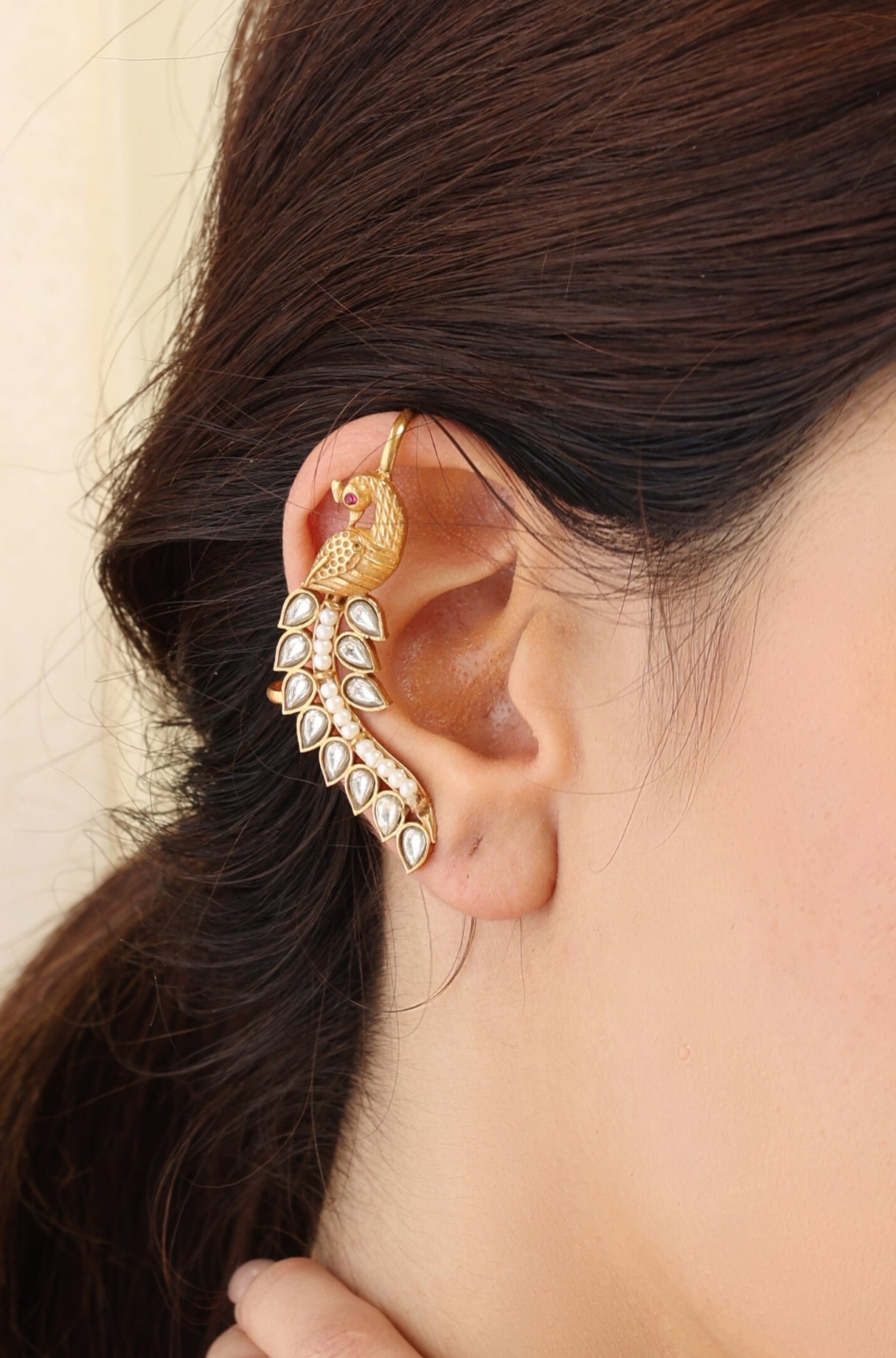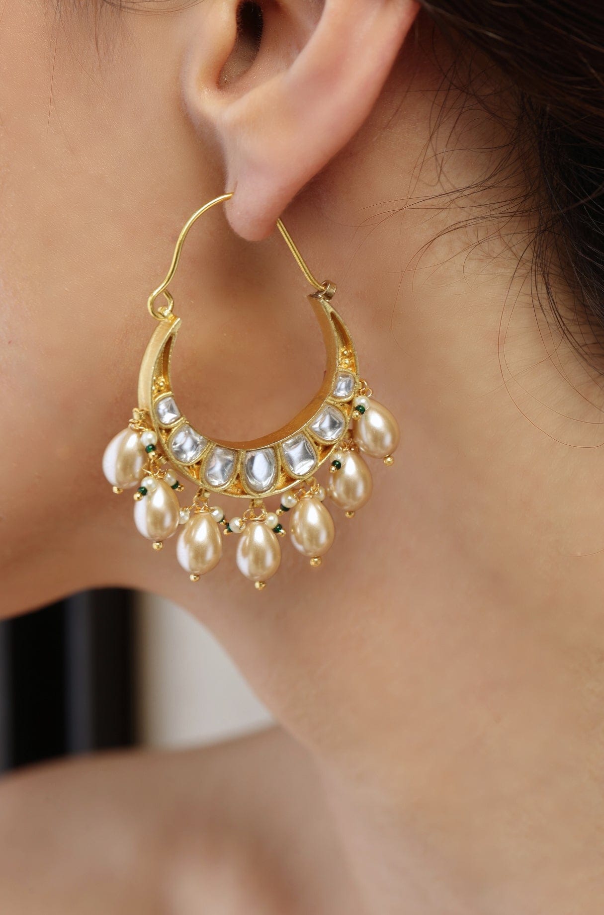 Kundan White Pearl Drop Earrings - Joules by Radhika