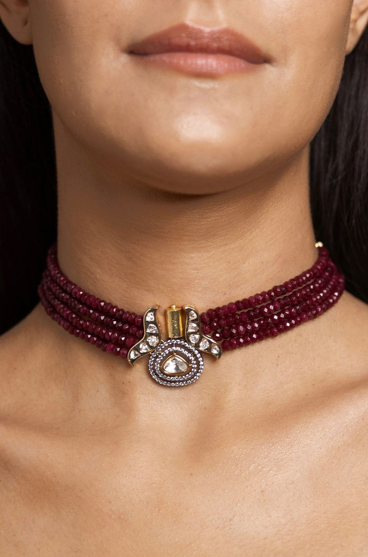 Description: This bold red choker makes a striking statement, perfect for adding a pop of colour to your look.