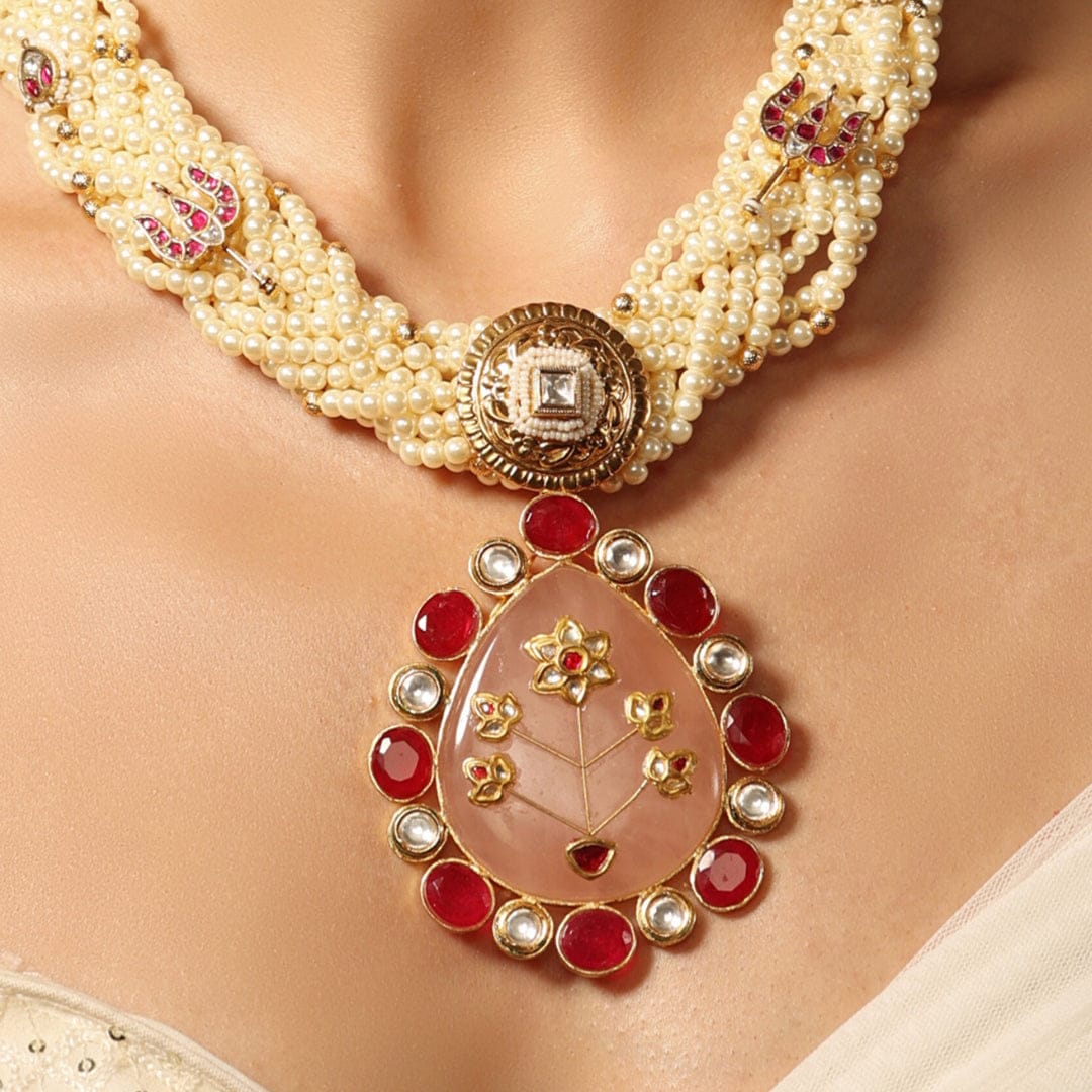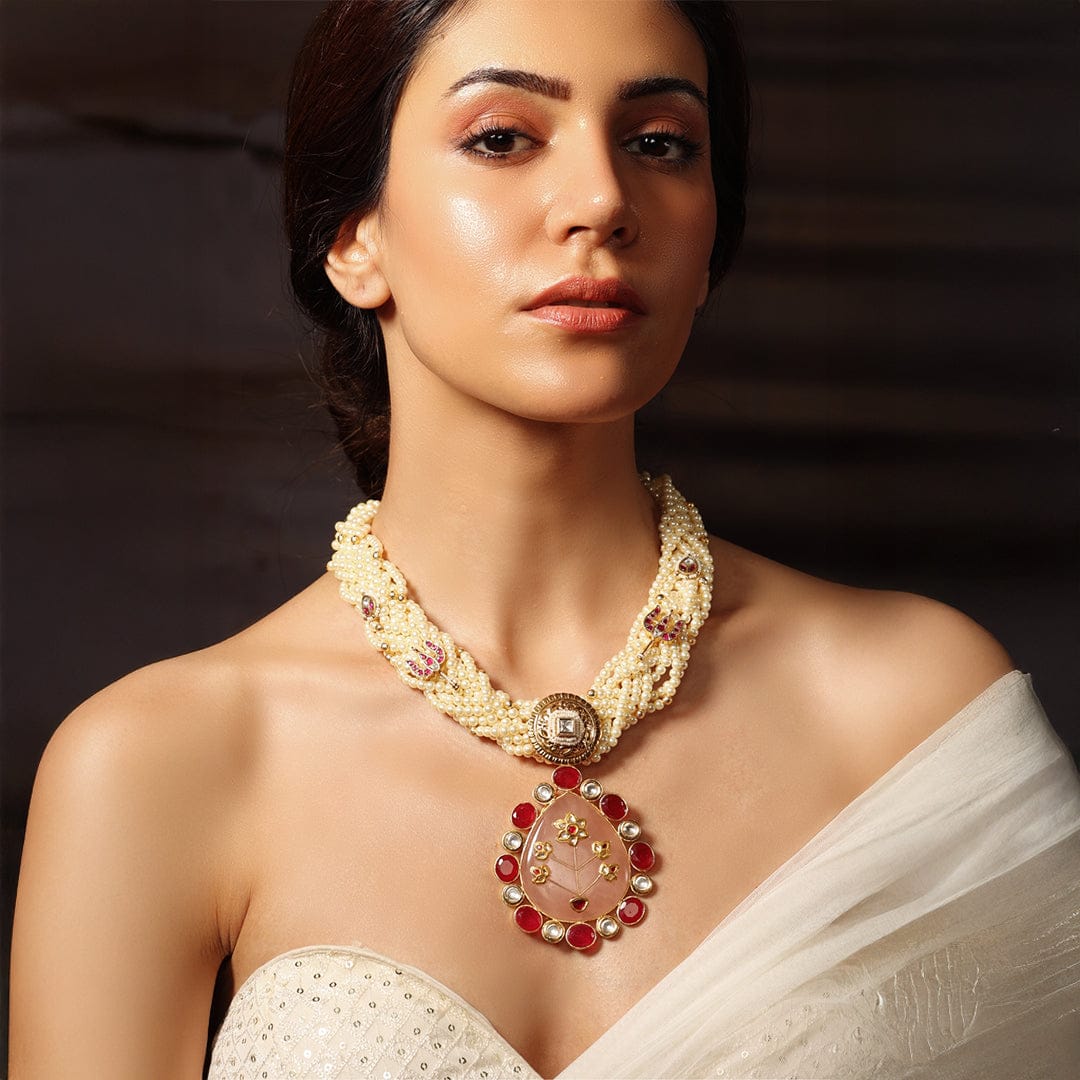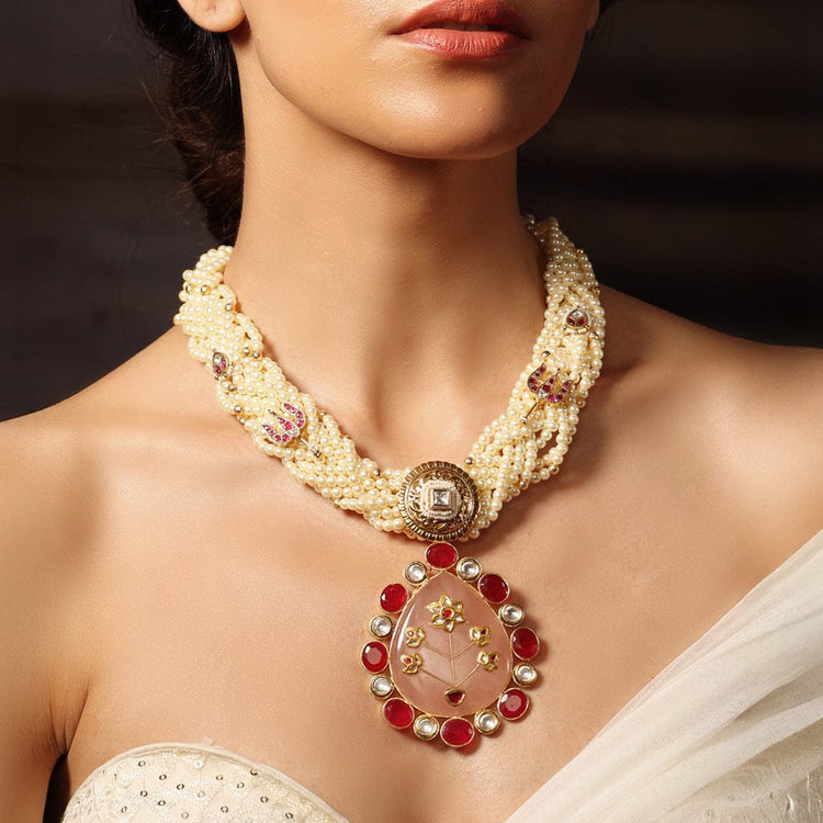 We use 22K Micron Gold Plating on brass, paired with high quality pearls, precious carved beads, semi precious stones, intricately hand painted with enamel, exquisite high quality pearls and high quality kundan that are celebrated for their durability and refinement - making every Joules by Radhika creation a piece that radiates brilliance and sophistication.