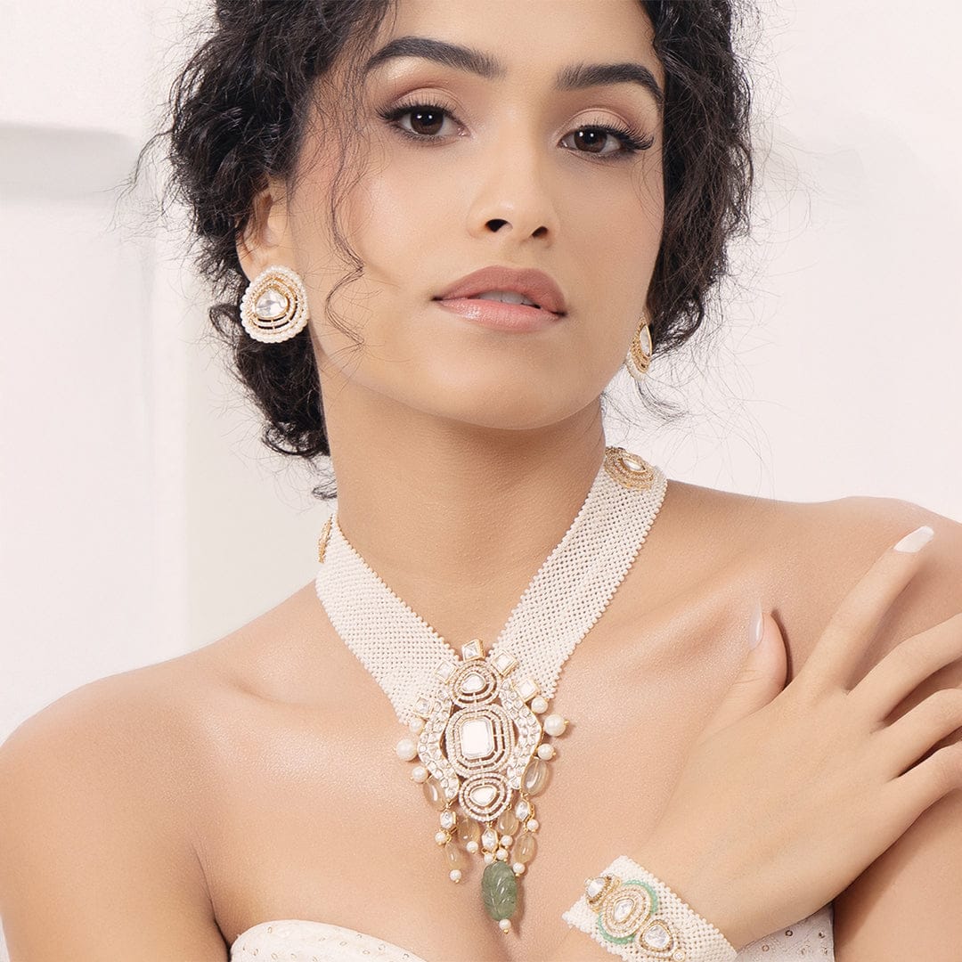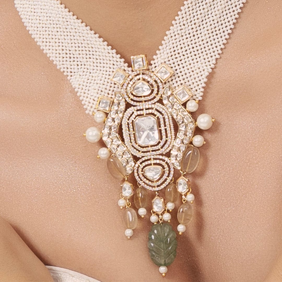 Description: A sophisticated necklace set crafted from brass with a yellow gold and white plating.You can choose to buy the earring also to make it a complete set.