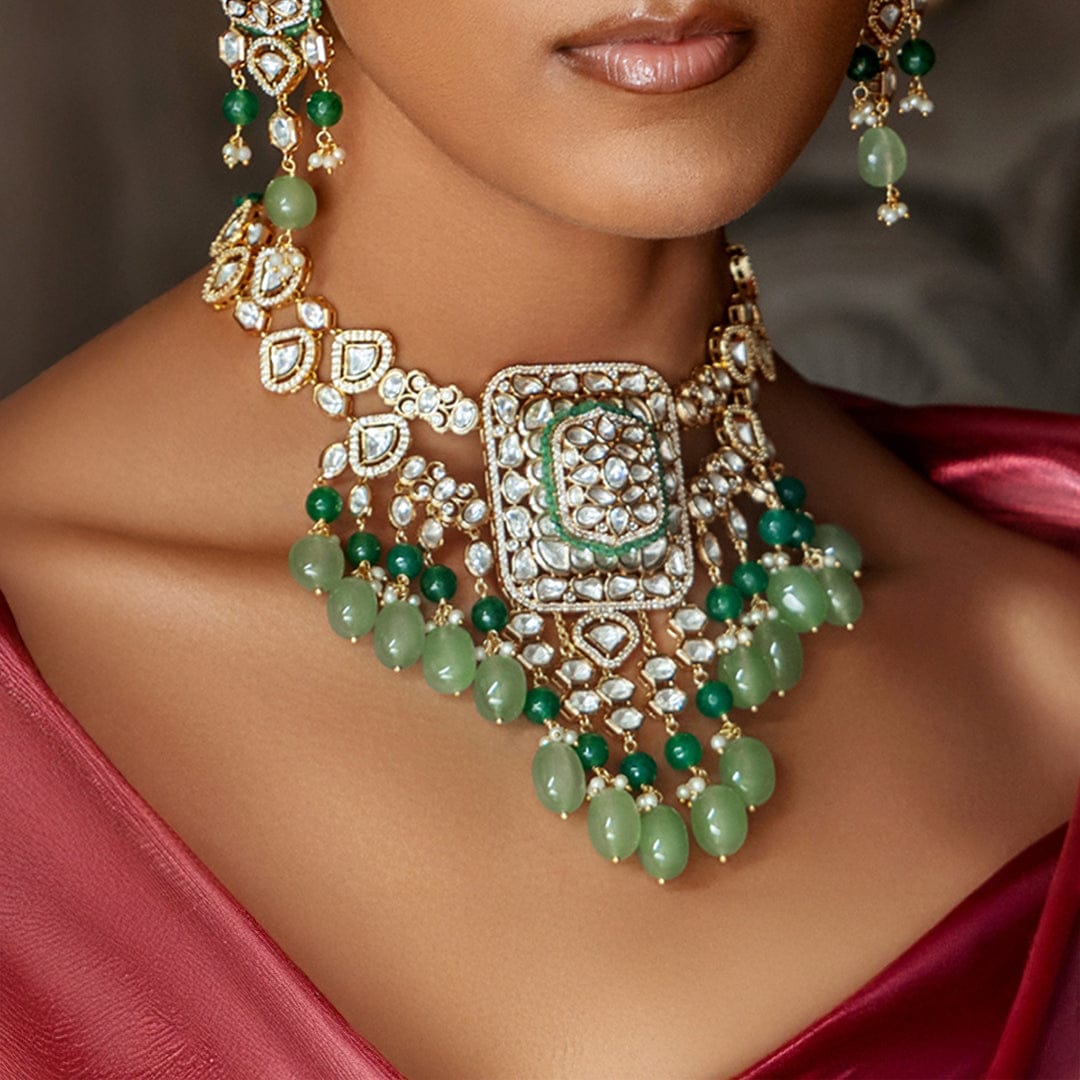 Add Polki & Green Jade Tumbles Bridal Necklace Set to the cart