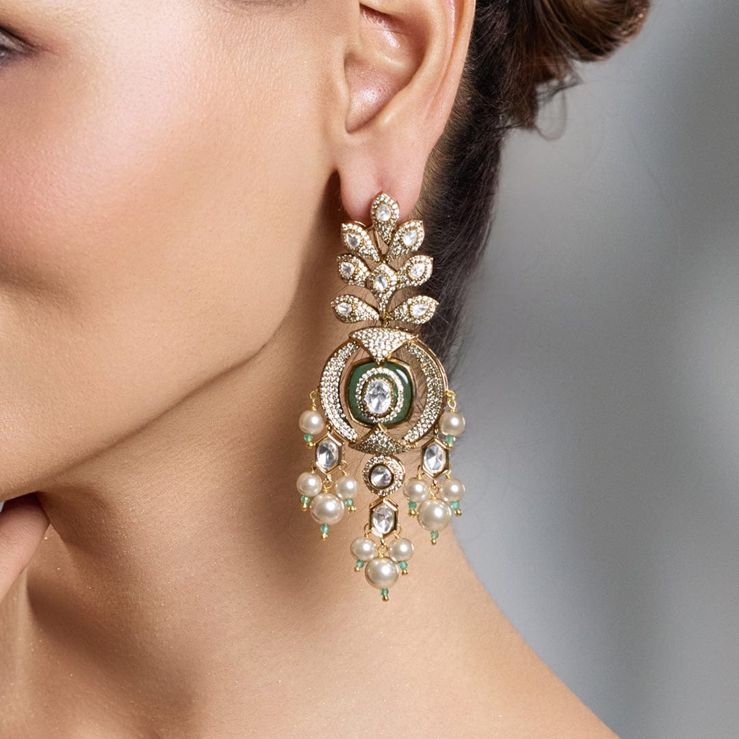 Green Jade Stone Studded Drop Earrings - Joules by Radhika