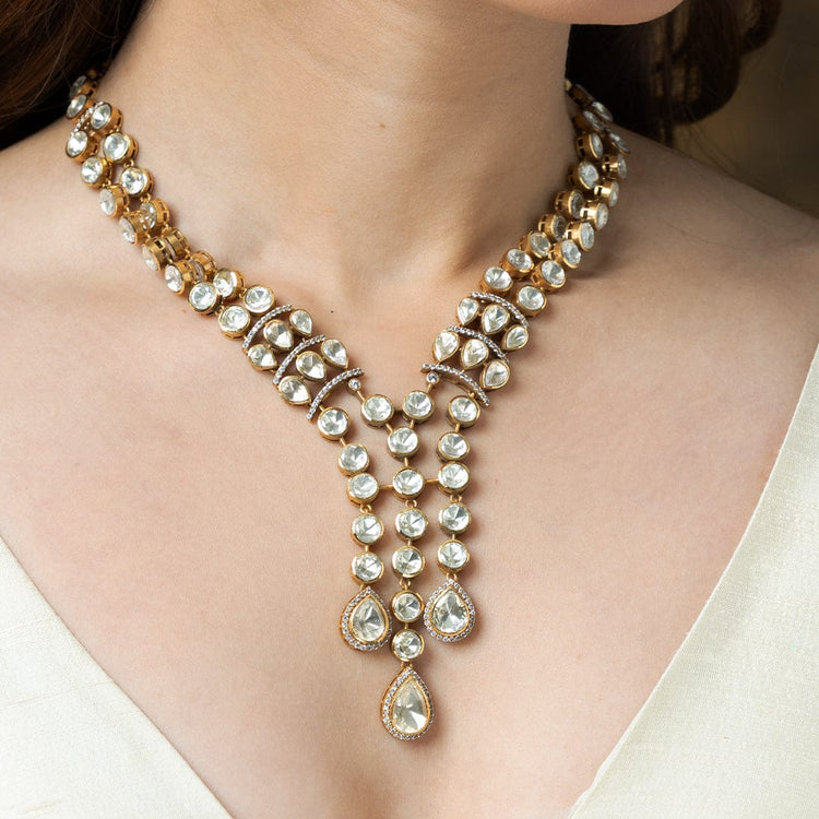 We use 22K Micron Gold Plating on brass, paired with high quality pearls, precious carved beads, semi precious stones, intricately hand painted with enamel, exquisite high quality pearls and high quality kundan that are celebrated for their durability and refinement - making every Joules by Radhika creation a piece that radiates brilliance and sophistication.
