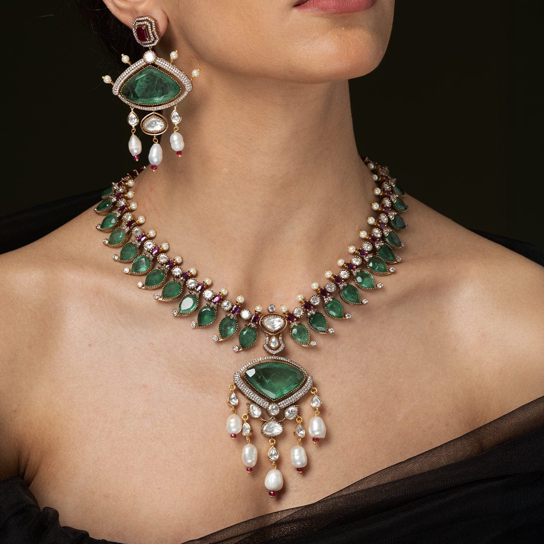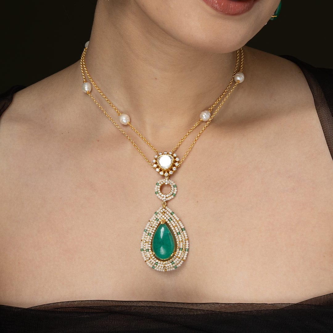 Add Emerald Dewdrop Layered Long Necklace Set to the cart