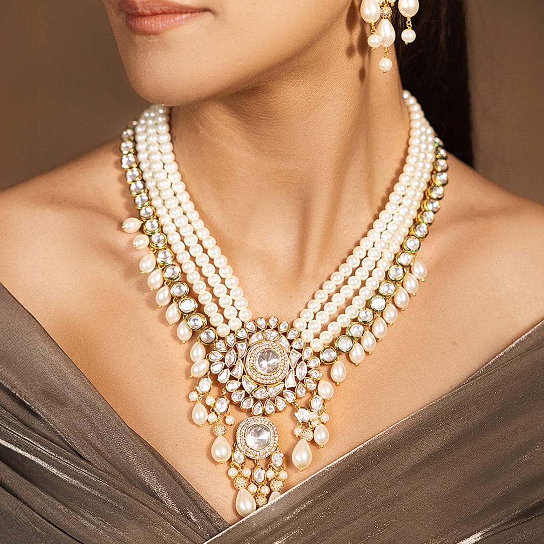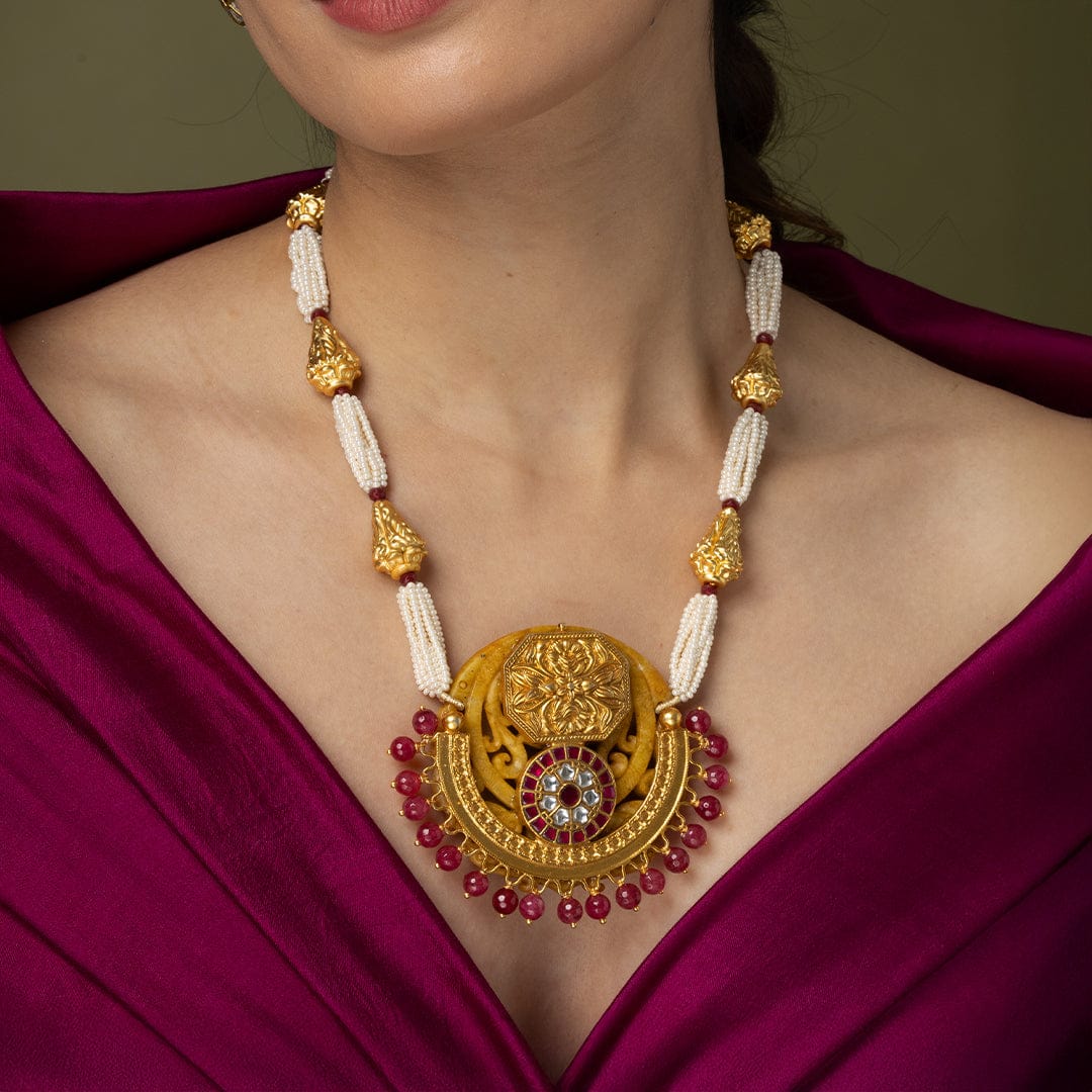 Add Gold Plated Medallion & Pearl Long Necklace Set to the cart