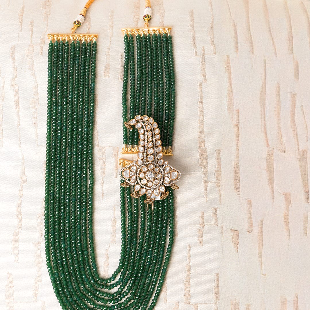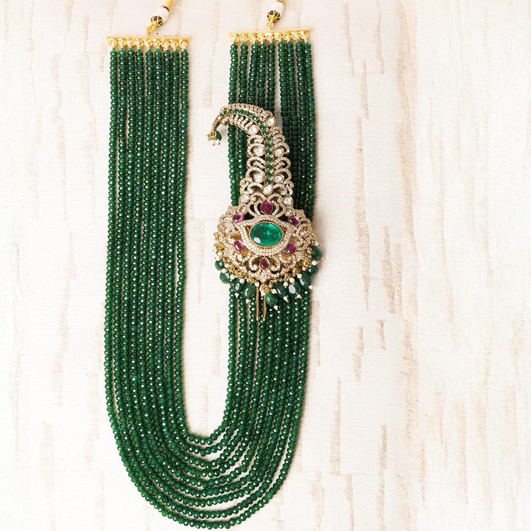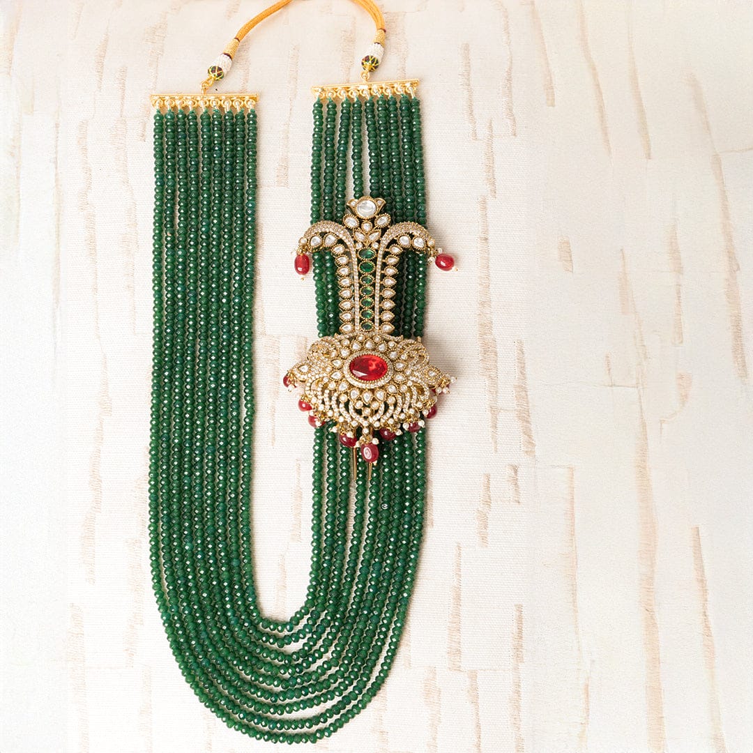 Add 8 Layers Green beads Dulha Groom Sherwani Necklace With Brooch For wedding to the cart