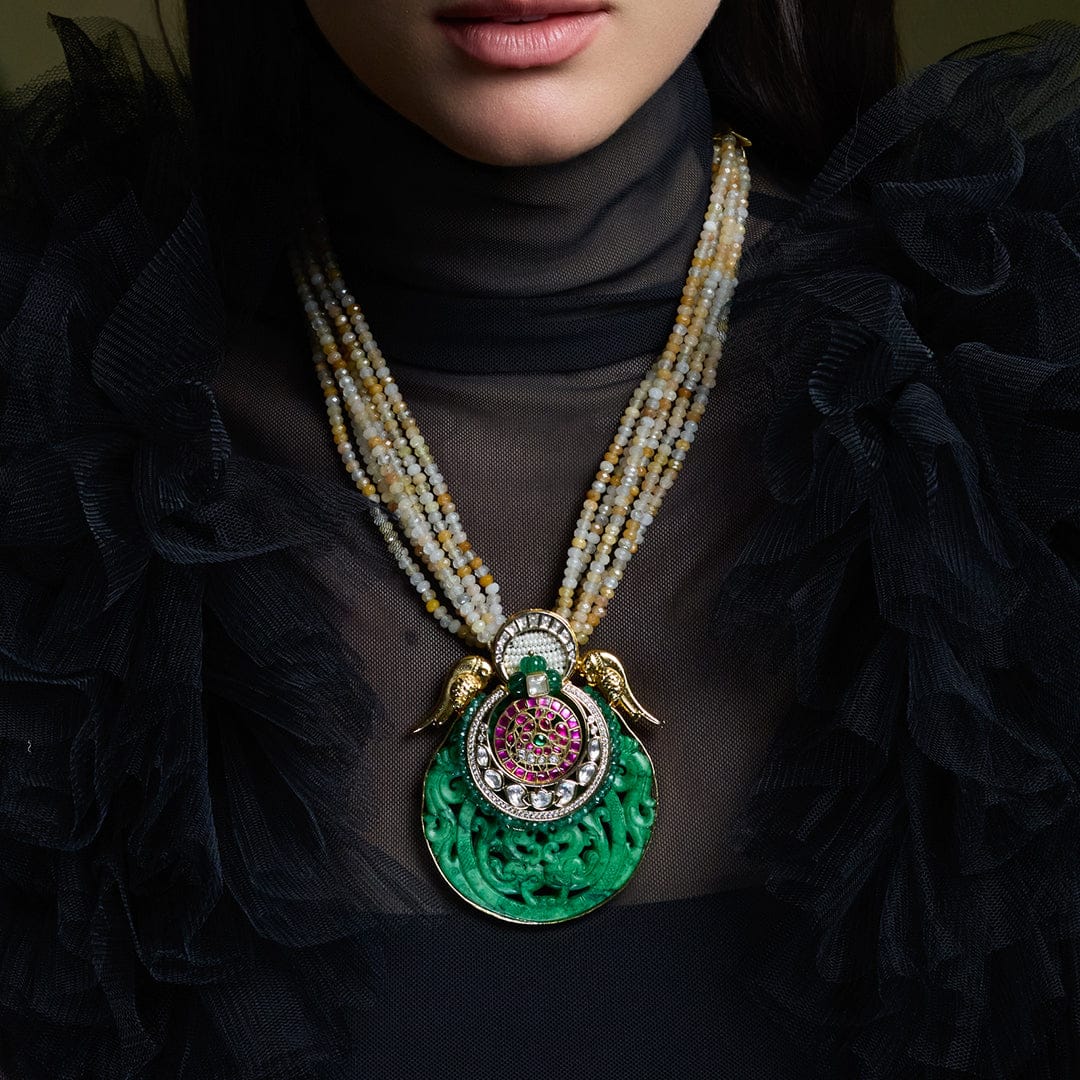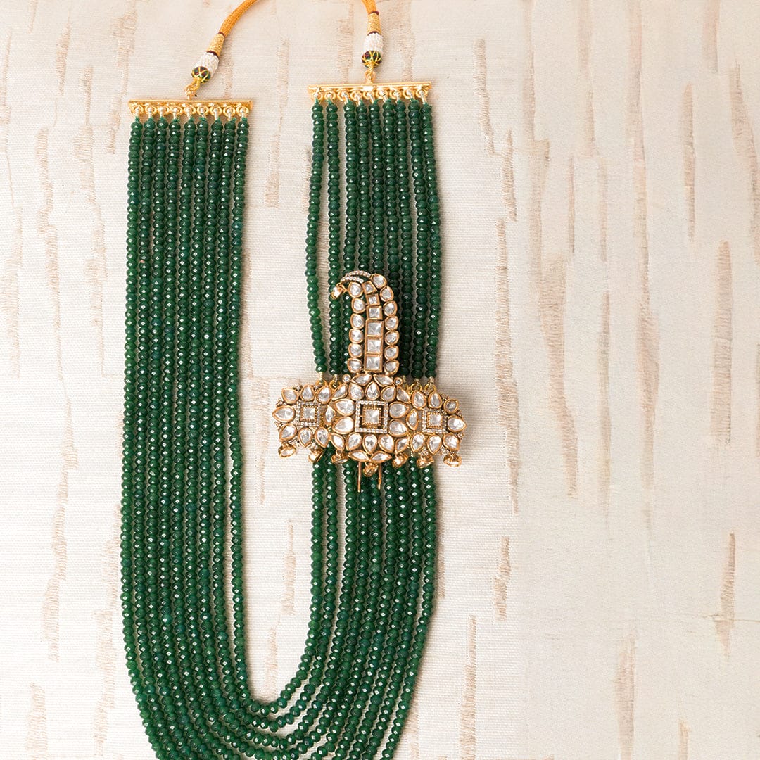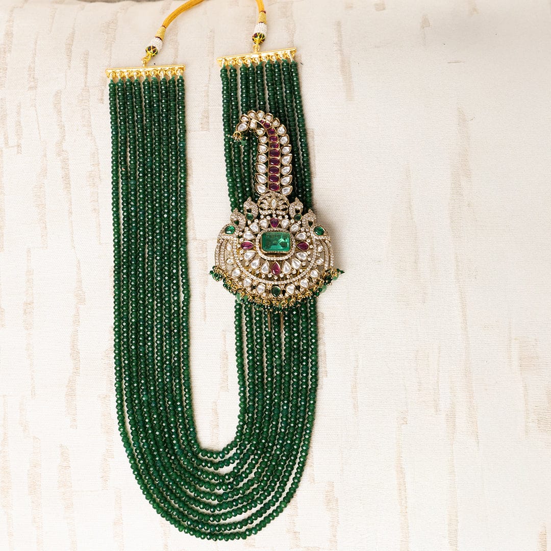 Add 8 Layers Green beads Dulha Groom Sherwani Necklace With Brooch For wedding to the cart